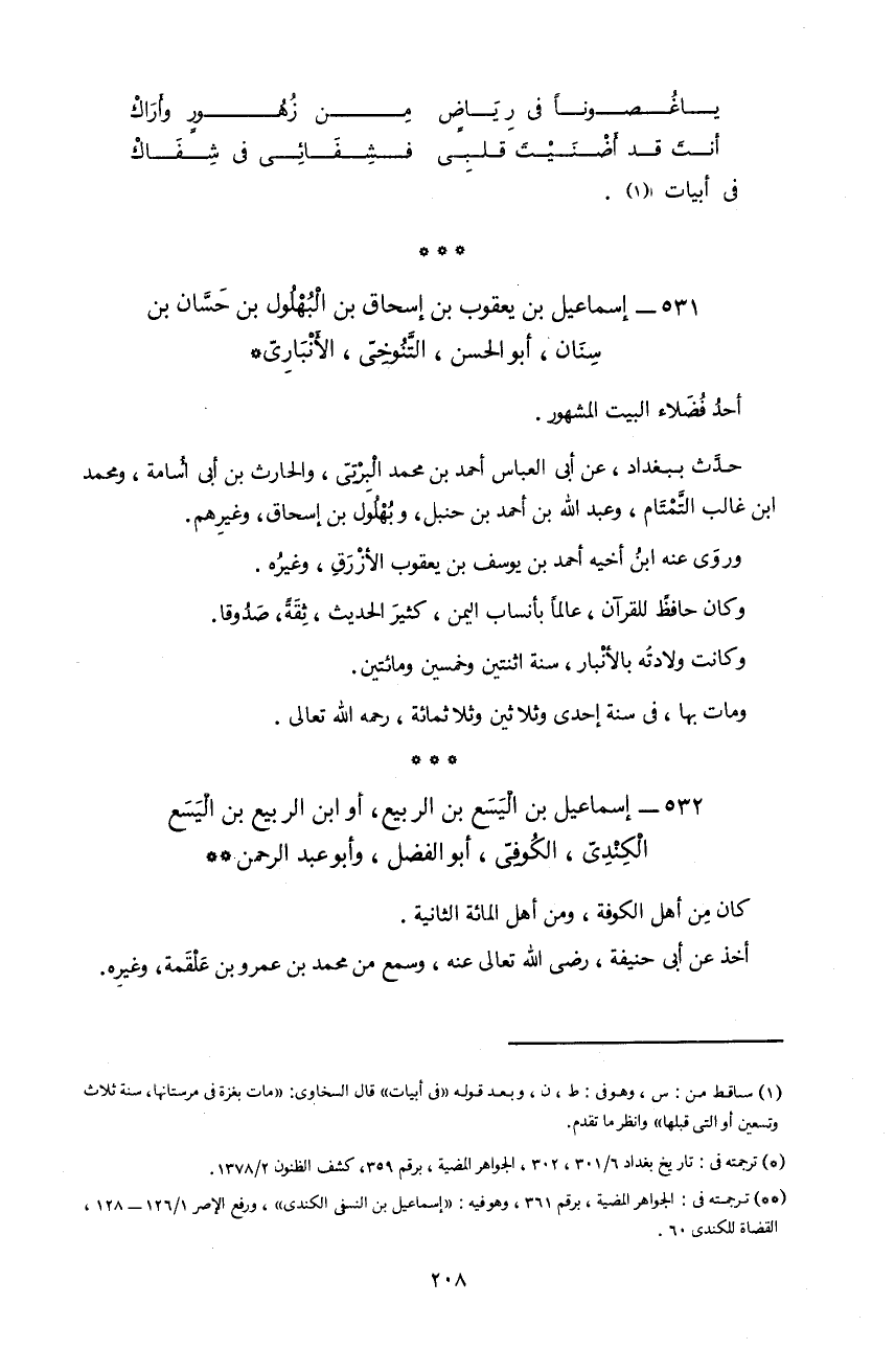 531 - إسماعيل بن يعقوب بن إسحاق بن البهلول بن حسّان بن سنان، أبو الحسن، التّنوخىّ، الأنبارىّ *