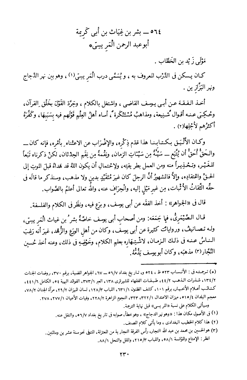 564 - بشر بن غياث بن أبى كريمة أبو عبد الرحمن المريسىّ *