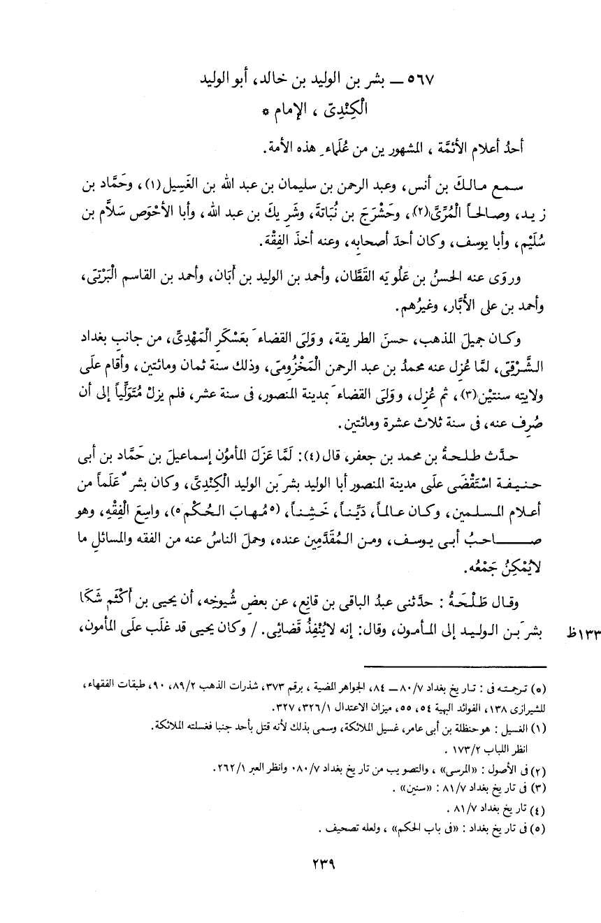 567 - بشر بن الوليد بن خالد، أبو الوليد الكندىّ، الإمام *