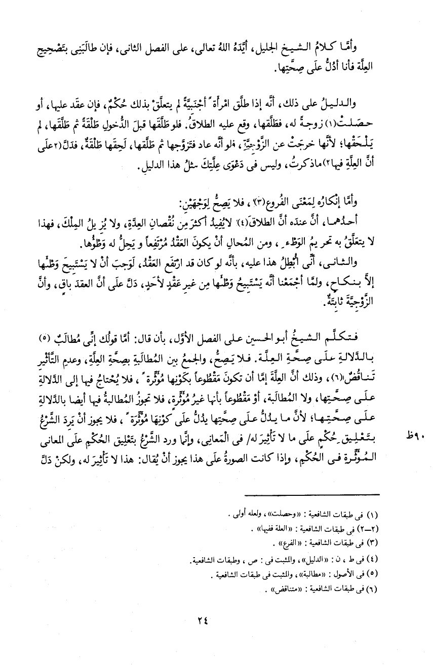 24 و أمّا كلام الشيخ الجليل، أيّده اللّه تعالى، على الفصل الثانى، فإن طالبنى بتصحيح العلّة فأنا أدلّ على صحّتها.