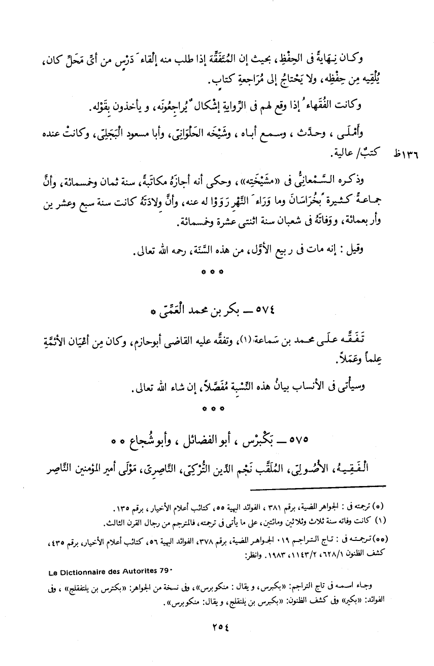 **) ترجمته فى: تاج التراجم 19. الجواهر المضية، برقم 378، الفوائد البهية 56، كتائب أعلام الأخيار، برقم 435، كشف الظنون 1/ 628، 2/ 1143، 1983. و انظر:. 97 setirotuA sed eriannoitciD eL و جاء اسمه فى تاج التراجم: «بكبرس، و يقال: منكوبرس»، و فى نسخة من الجواهر: «بكترس بن يلتفقلج»، و فى الفوائد: «بكير» و فى كشف الظنون: «بكبرس بن يلتفقلج، و يقال: منكوبرس».