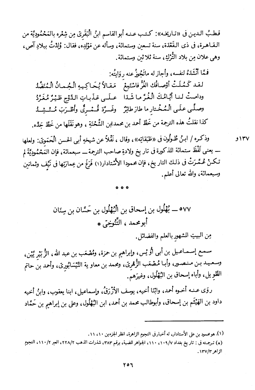 577 - بهلول بن إسحاق بن البهلول بن حسّان بن سنان أبو محمد، التّنوخىّ *