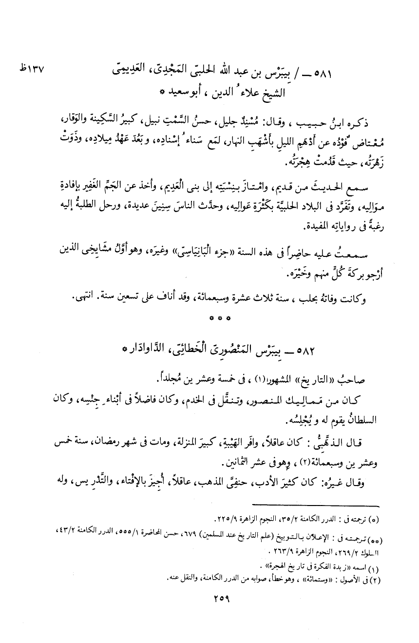 581 - /بيبرس بن عبد اللّه الحلبىّ المجدىّ، العديمىّ الشيخ علاء الدين، أبو سعيد *