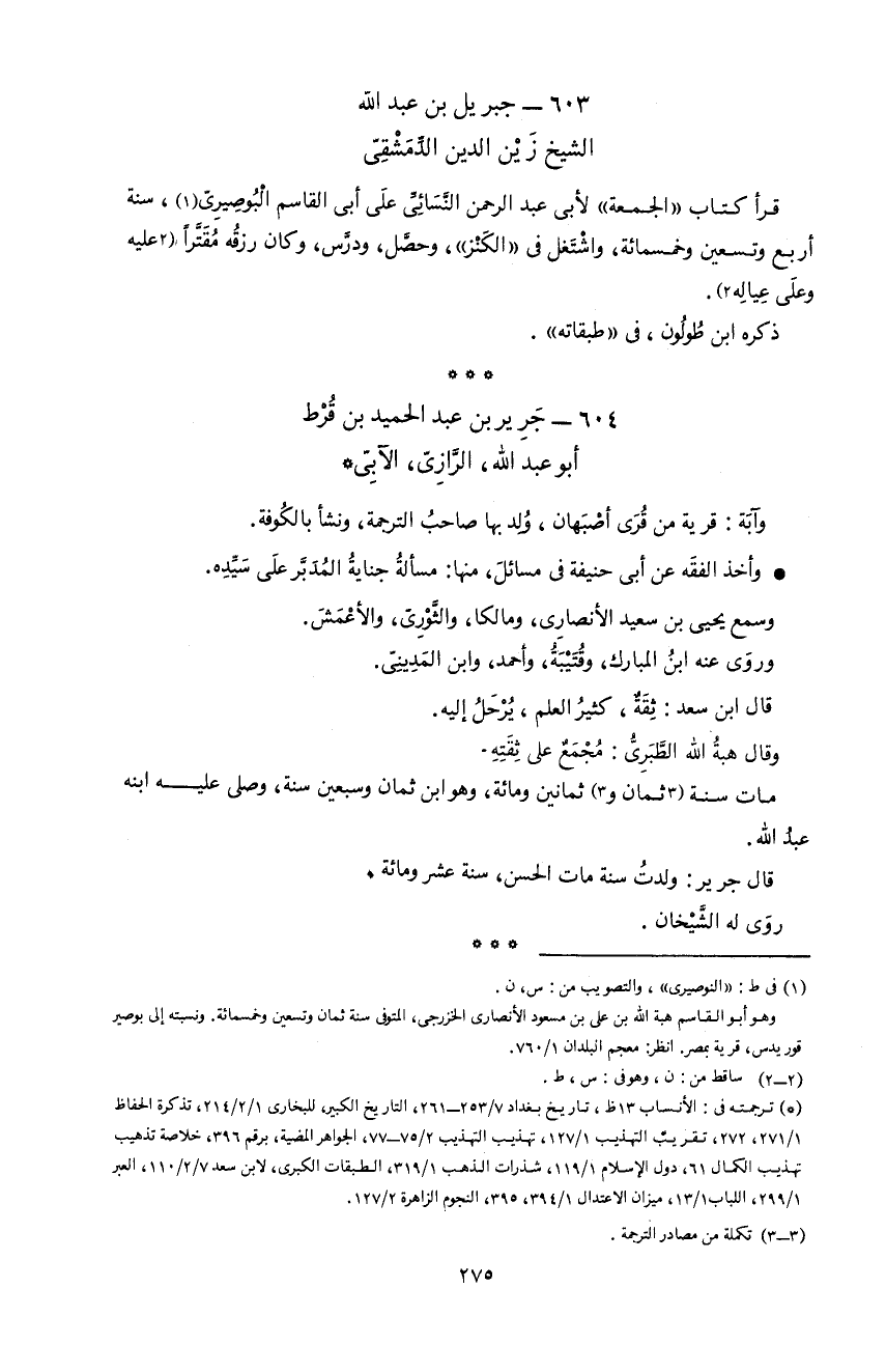 604 - جرير بن عبد الحميد بن قرط أبو عبد اللّه، الرّازىّ، الآبىّ *
