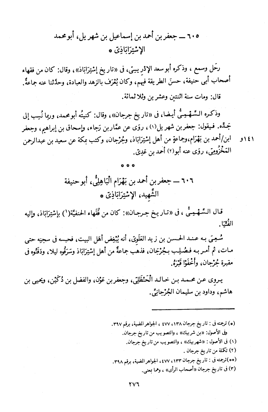 606 - جعفر بن أحمد بن بهرام الباهلىّ، أبو حنيفة الشّهيد، الإستراباذىّ **
