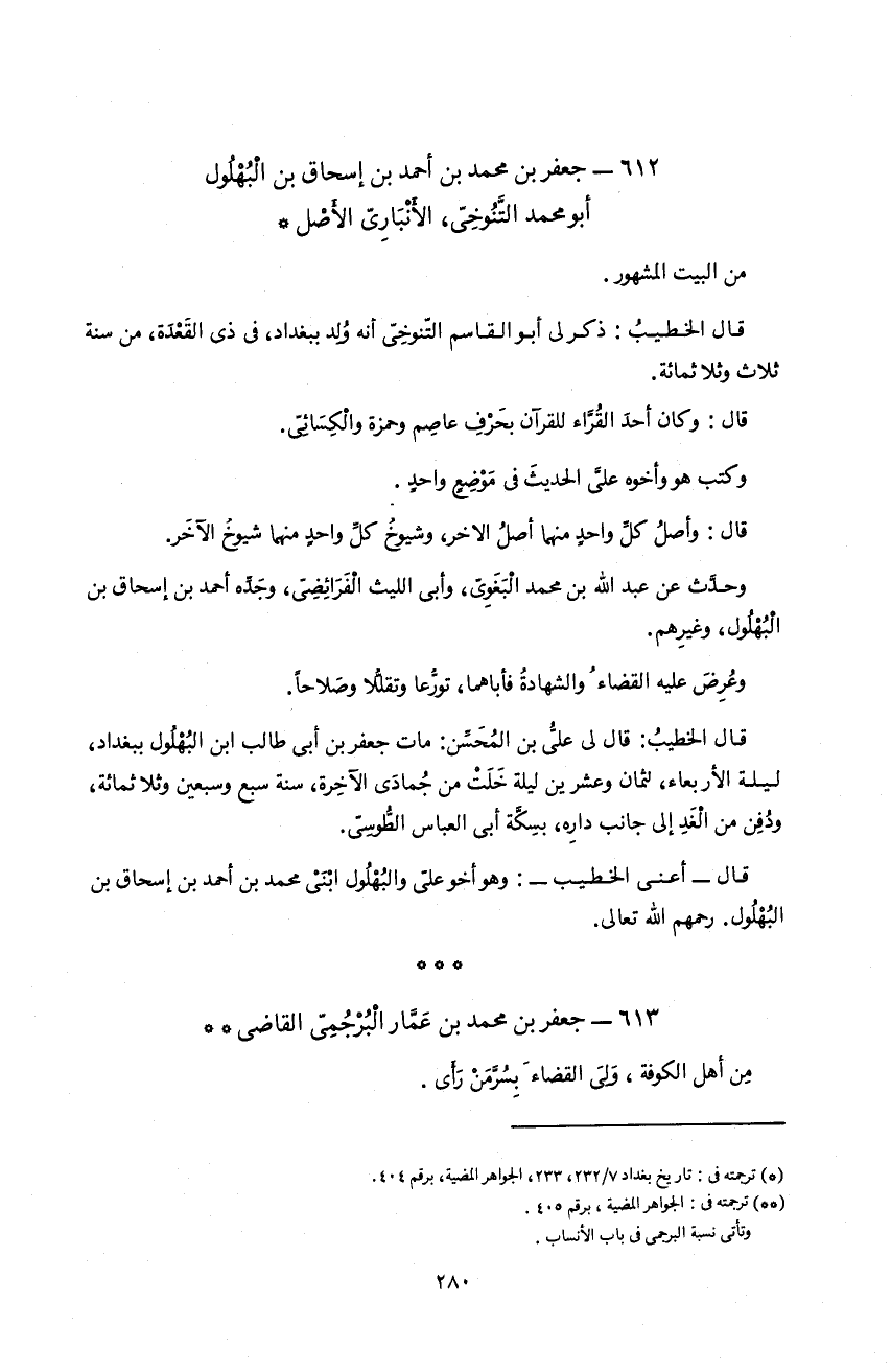 612 - جعفر بن محمد بن أحمد بن إسحاق بن البهلول أبو محمد التّنوخىّ، الأنبارىّ الأصل *