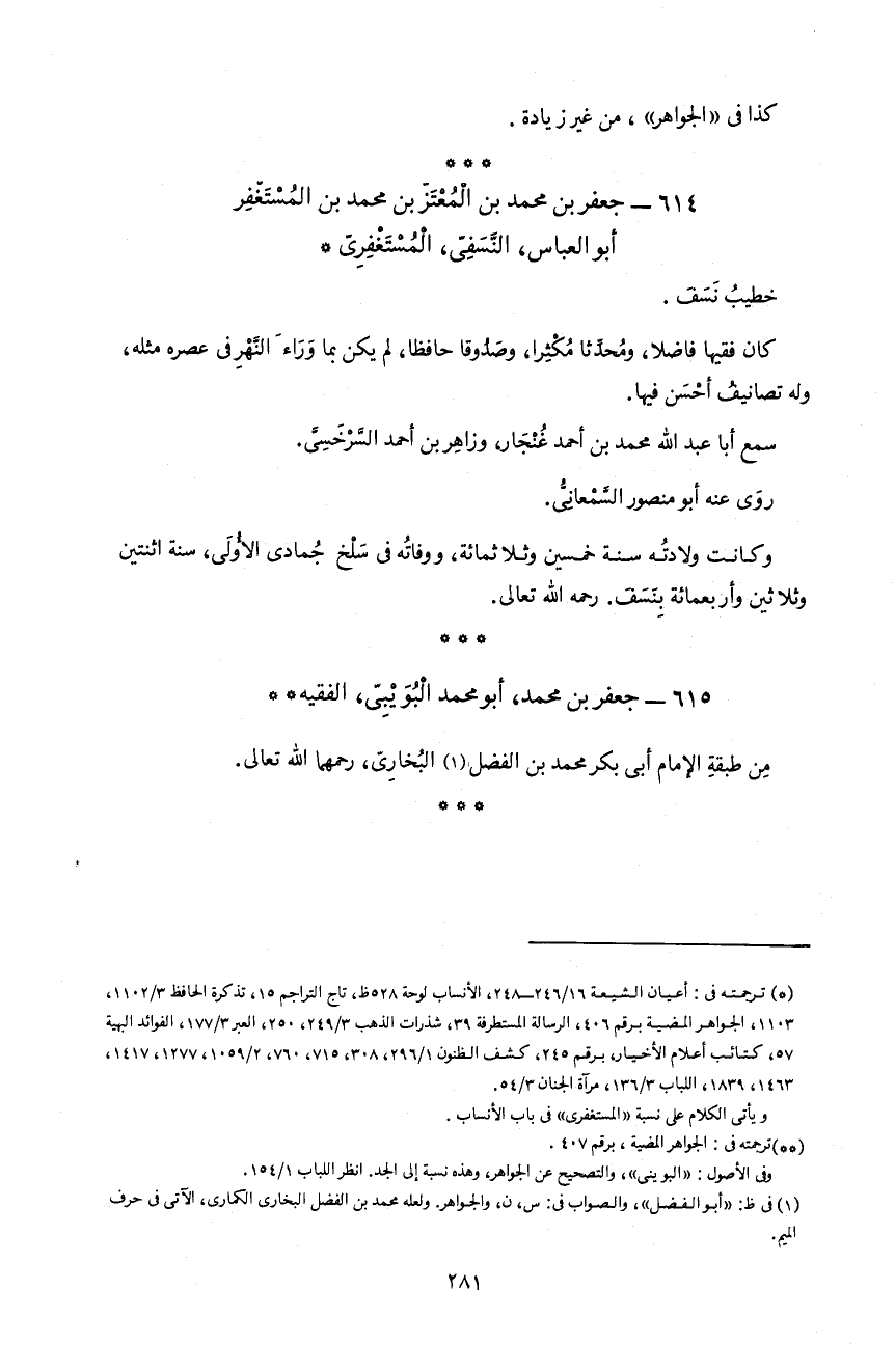 614 - جعفر بن محمد بن المعتزّ بن محمد بن المستغفر أبو العباس، النّسفىّ، المستغفرىّ *