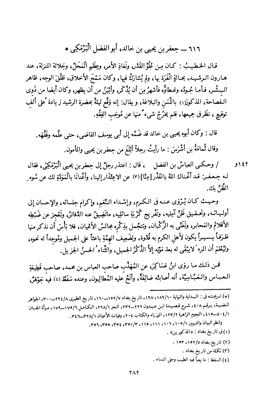 616 - جعفر بن يحيى بن خالد، أبو الفضل البرمكى *
