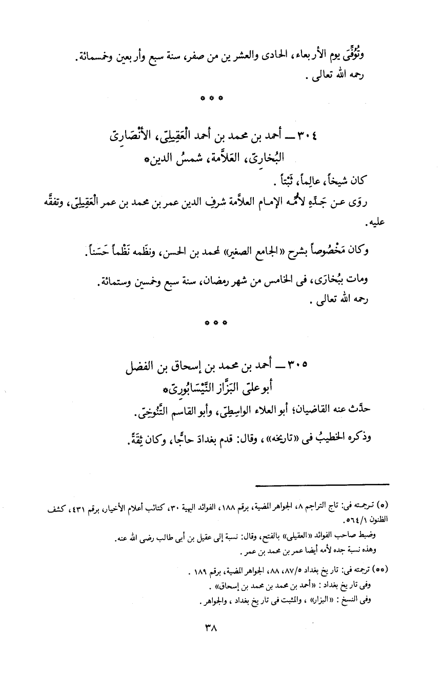 304 - أحمد بن محمد بن أحمد العقيلىّ، الأنصارىّ البخارىّ، العلاّمة، شمس الدين *