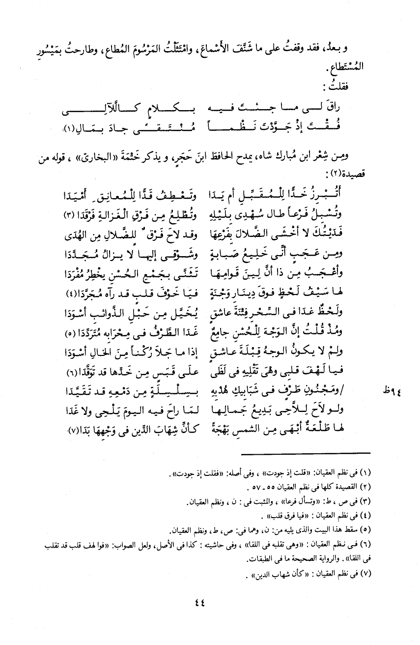 و من شعر ابن مبارك شاه، يمدح الحافظ ابن حجر، و يذكر ختمة «البخارىّ»، قوله من قصيدة 2:
