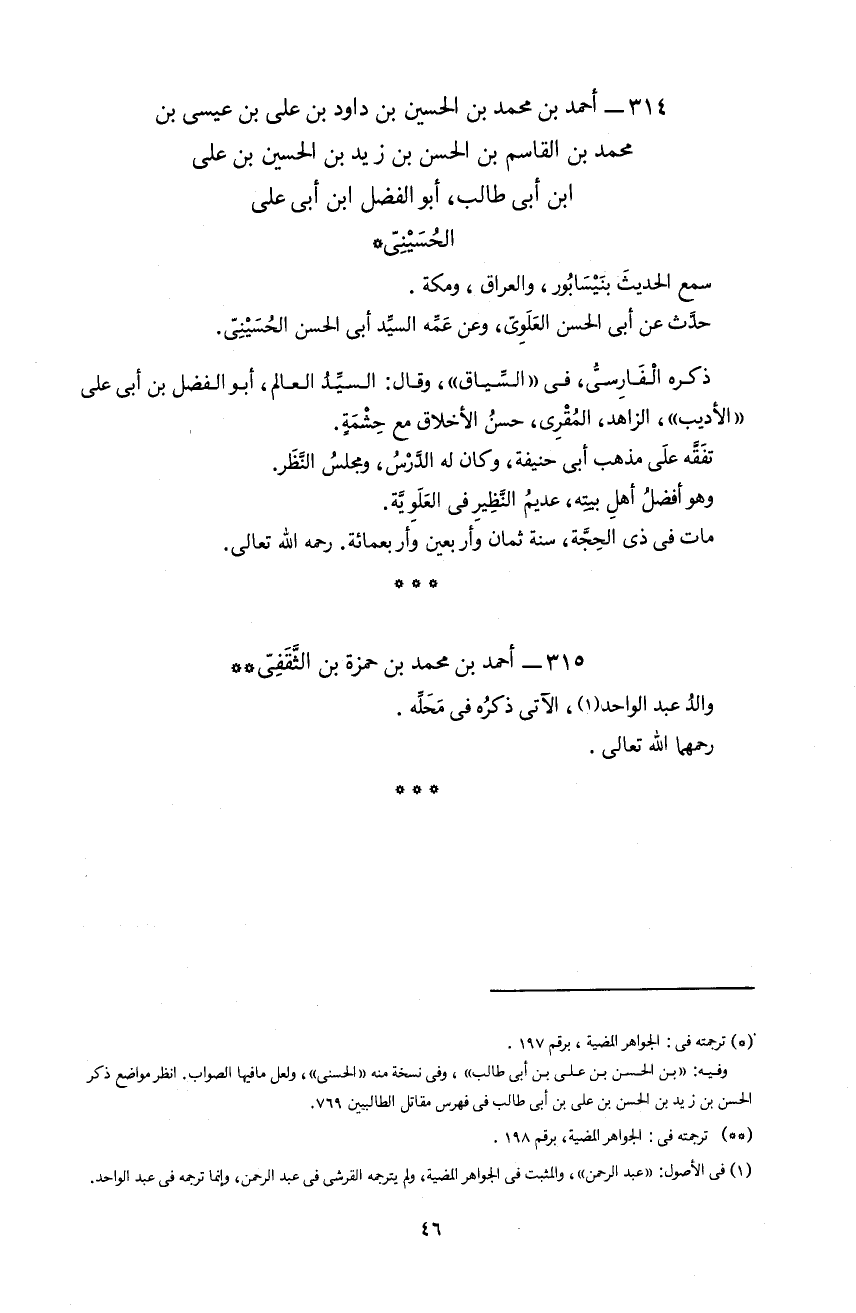 314 - أحمد بن محمد بن الحسين بن داود بن على بن عيسى بن محمد بن القاسم بن الحسن بن زيد بن الحسين بن على ابن أبى طالب، أبو الفضل ابن أبى على الحسينىّ *
