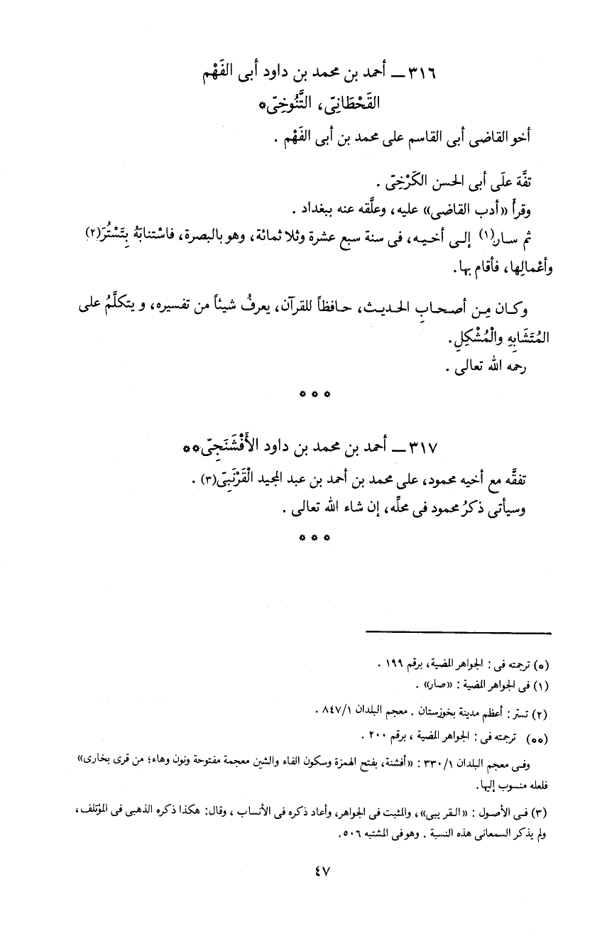 316 - أحمد بن محمد بن داود أبى الفهم القحطانىّ، التّنوخىّ *