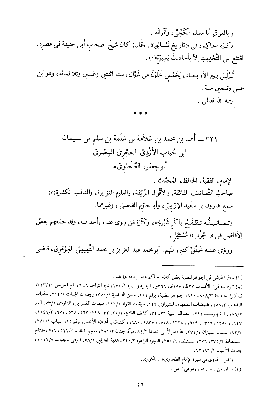 321 - أحمد بن محمد بن سلامة بن سلمة بن سليم بن سليمان ابن حباب الأزدىّ الحجرىّ المصرىّ أبو جعفر، الطّحاوىّ *