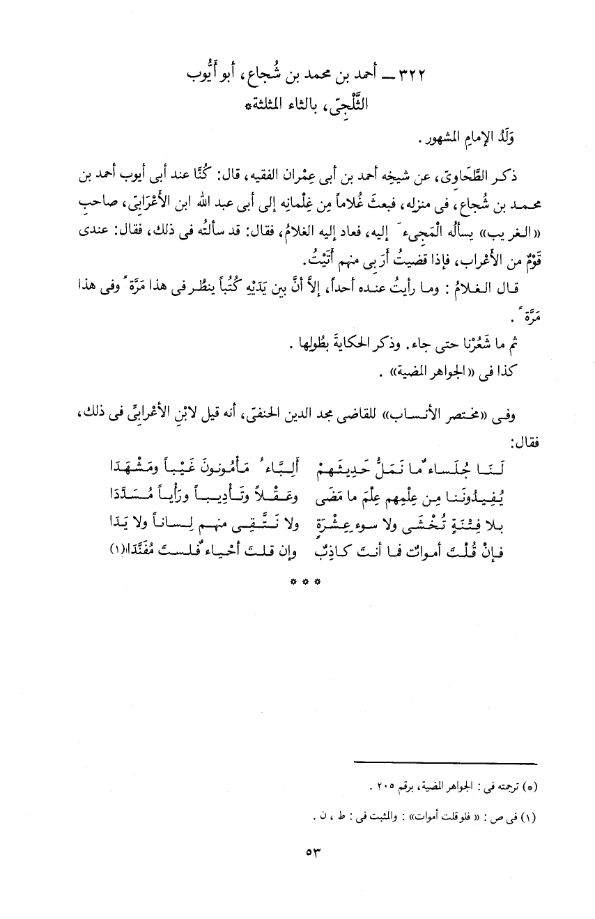 322 - أحمد بن محمد بن شجاع، أبو أيّوب الثّلجىّ، بالثاء المثلثة *
