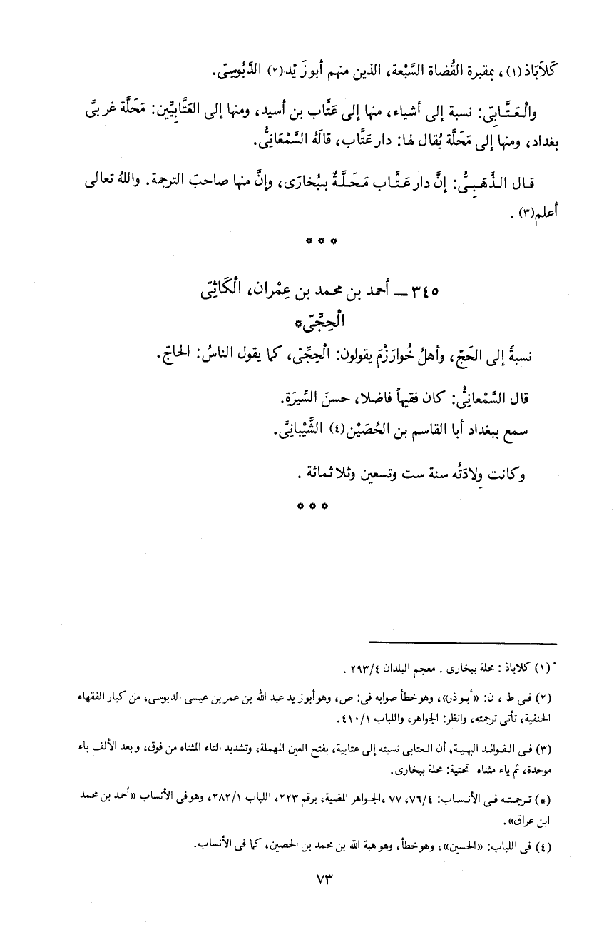 73 كلاباذ 1، بمقبرة القضاة السّبعة، الذين منهم أبو زيد 2 الدّبوسىّ.