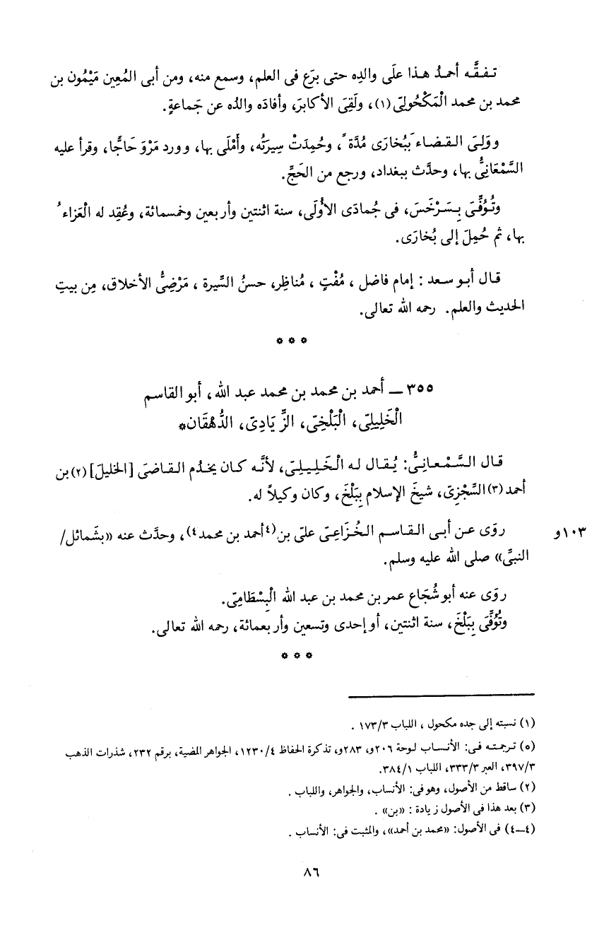 355 - أحمد بن محمد بن محمد عبد اللّه، أبو القاسم الخليلىّ، البلخىّ، الزّيادىّ، الدّهقان *