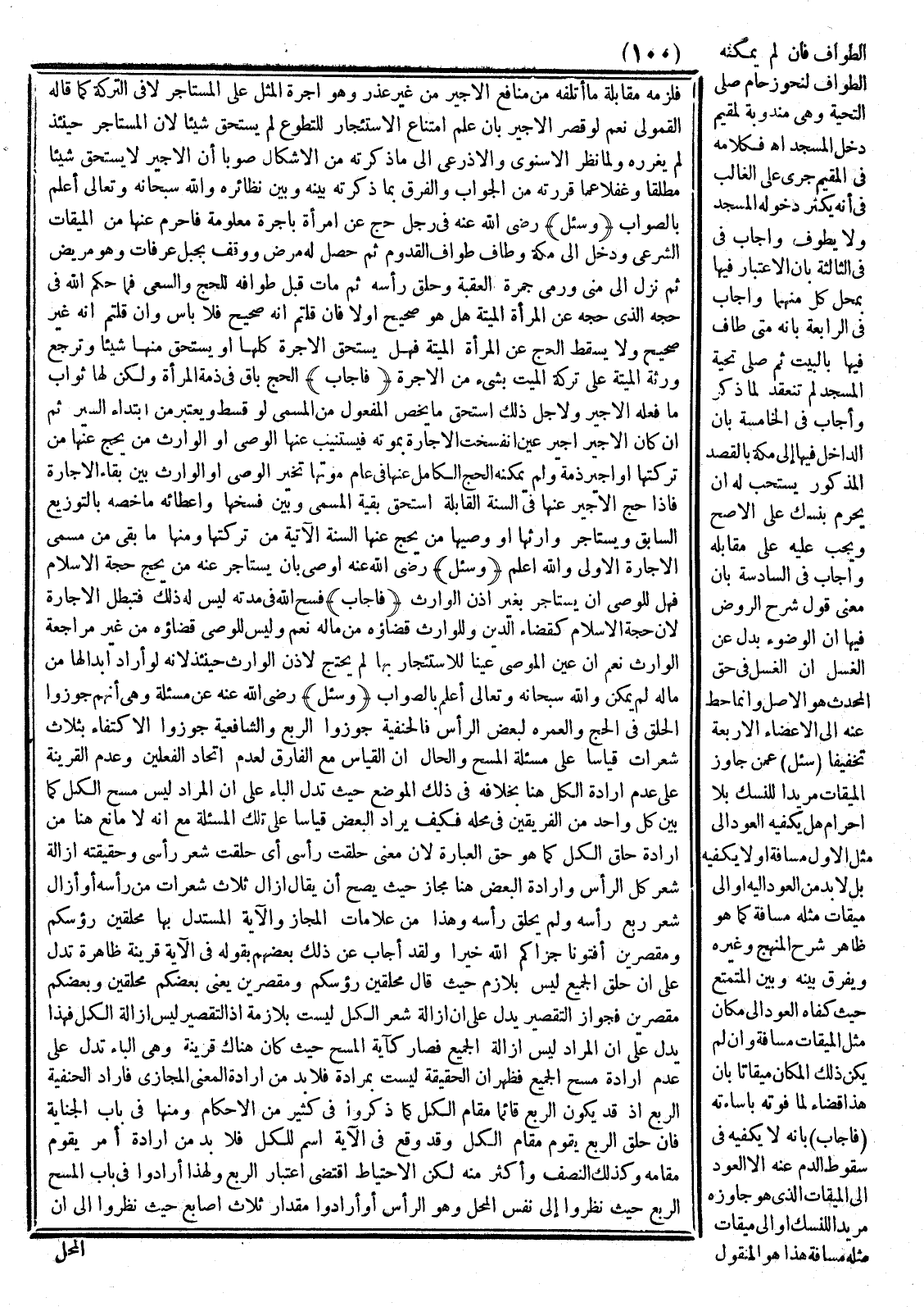 (وَسُئِلَ) - رَضِيَ اللَّهُ عَنْهُ - عَنْ مَسْأَلَةٍ وَهِيَ أَنَّهُمْ جَوَّزُوا الْحَلْقَ فِي الْحَجِّ وَالْعُمْرَةِ لِبَعْضِ الرَّأْسِ فَالْحَنَفِيَّةُ جَوَّزُوا الرُّبْعَ وَالشَّافِعِيَّةُ جَوَّزُوا الِاكْتِفَاءَ بِثَلَاثِ شَعَرَاتٍ قِيَاسًا عَلَى مَسْأَلَةِ الْمَسْحِ وَالْحَالُ أَنَّ الْقِيَاسَ مَعَ الْفَارِقِ لِعَدَمِ اتِّحَادِ الْفِعْلَيْنِ وَعَدَمِ الْقَرِينَةِ عَلَى عَدَمِ إرَادَةِ الْكُلِّ هُنَا بِخِلَافِهِ فِي ذَلِكَ الْمَوْضِعِ حَيْثُ تَدُلُّ الْبَاءُ عَلَى أَنَّ الْمُرَادَ لَيْسَ مَسْحَ الْكُلِّ كَمَا بَيَّنَ كُلُّ وَاحِدٍ مِنْ الْفَرِيقَيْنِ فِي مَحَلِّهِ فَكَيْفَ يُرَادُ الْبَعْضُ قِيَاسًا عَلَى تِلْكَ الْمَسْأَلَةِ مَعَ أَنَّهُ لَا مَانِعَ هُنَا مِنْ إرَادَةِ حَلْقِ الْكُلِّ كَمَا هُوَ حَقُّ الْعِبَارَةِ؛ لِأَنَّ مَعْنَى حَلَقْت رَأْسِي أَيْ حَلَقْت شَعْرَ رَأْسِي وَحَقِيقَتُهُ إزَالَةُ شَعْرِ كُلِّ الرَّأْسِ.