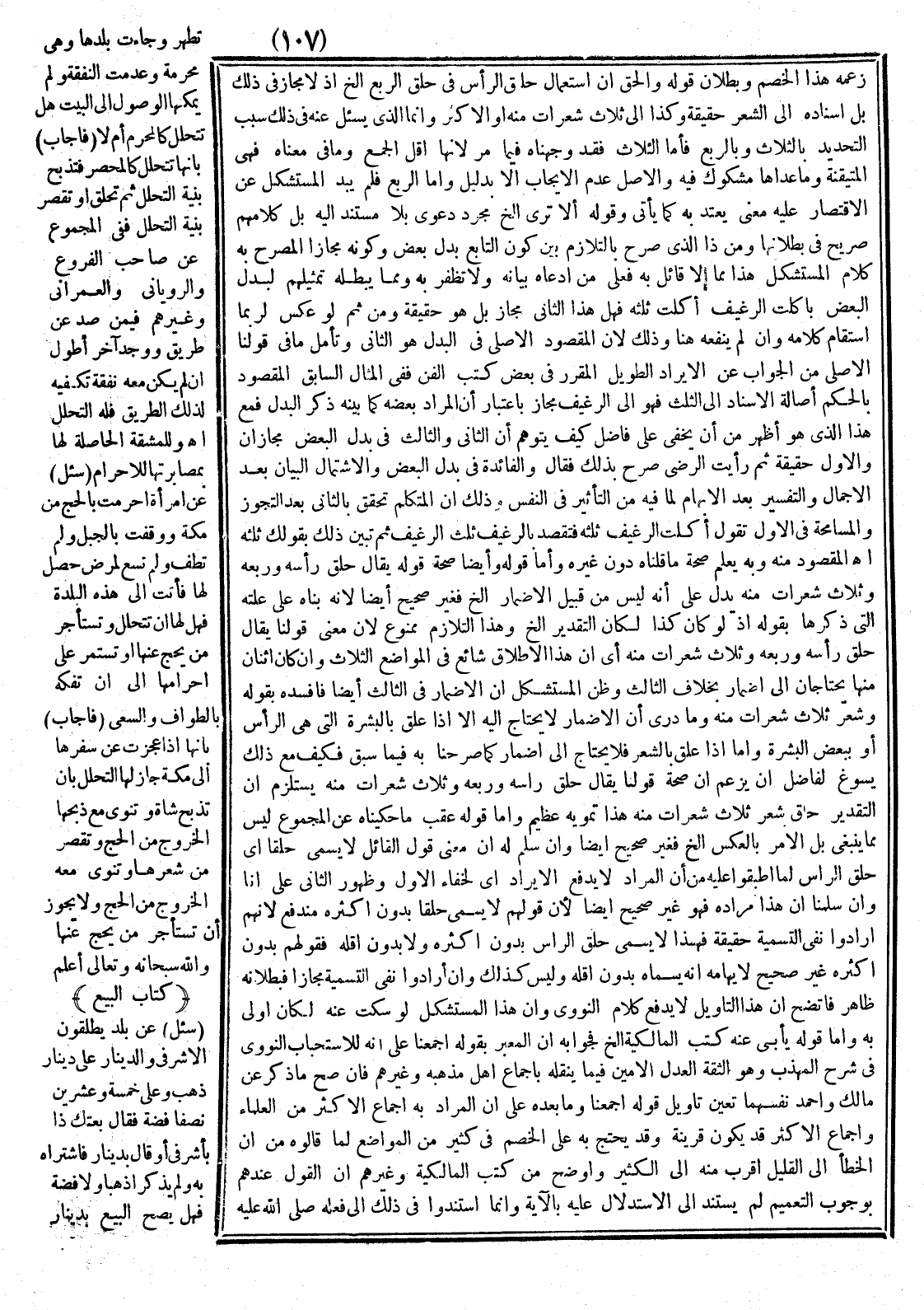 وَالْحَقُّ أَنَّ اسْتِعْمَالَ حَلْقِ الرَّأْسِ فِي حَلْقِ الرُّبْعِ إلَخْ إذْ لَا مَجَازَ فِي ذَلِكَ بَلْ إسْنَادُهُ إلَى الشَّعْرِ حَقِيقَةٌ وَكَذَا إلَى ثَلَاثِ شَعَرَاتٍ مِنْهُ أَوْ الْأَكْثَرِ وَإِنَّمَا الَّذِي يُسْأَلُ عَنْهُ فِي ذَلِكَ سَبَبُ التَّحْدِيدِ بِالثَّلَاثِ وَبِالرُّبْعِ.