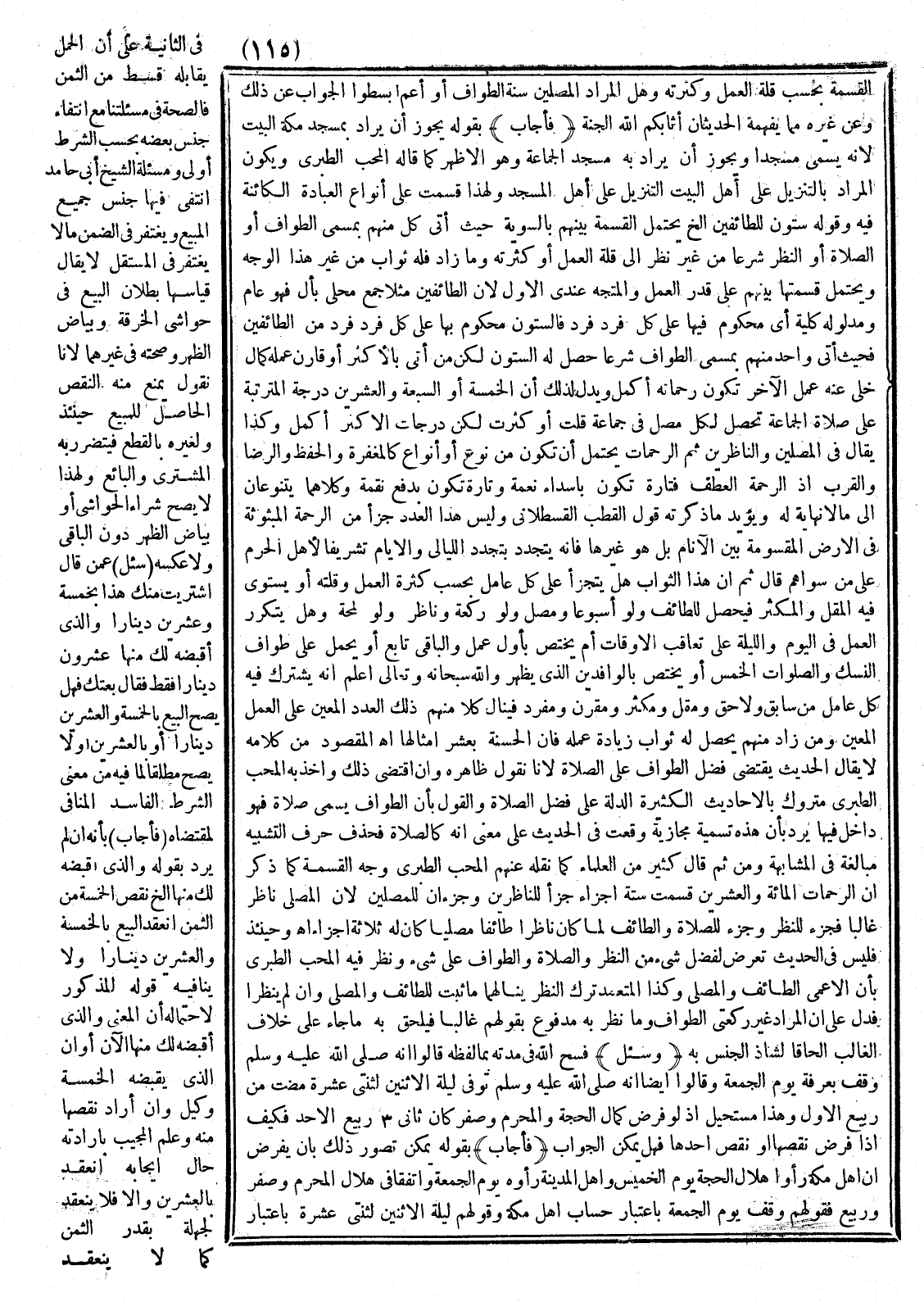 الْقِسْمَةُ بِحَسَبِ قِلَّةِ الْعَمَلِ وَكَثْرَتِهِ وَهَلِ الْمُرَادُ الْمُصَلِّينَ سُنَّةَ الطَّوَافِ أَوْ أَعُمَّ اُبْسُطُوا الْجَوَابَ عَنْ ذَلِكَ وَعَنْ غَيْرِهِ مِمَّا يُفْهِمُهُ الْحَدِيثَانِ أَثَابَكُمْ اللَّهُ الْجَنَّةَ.
