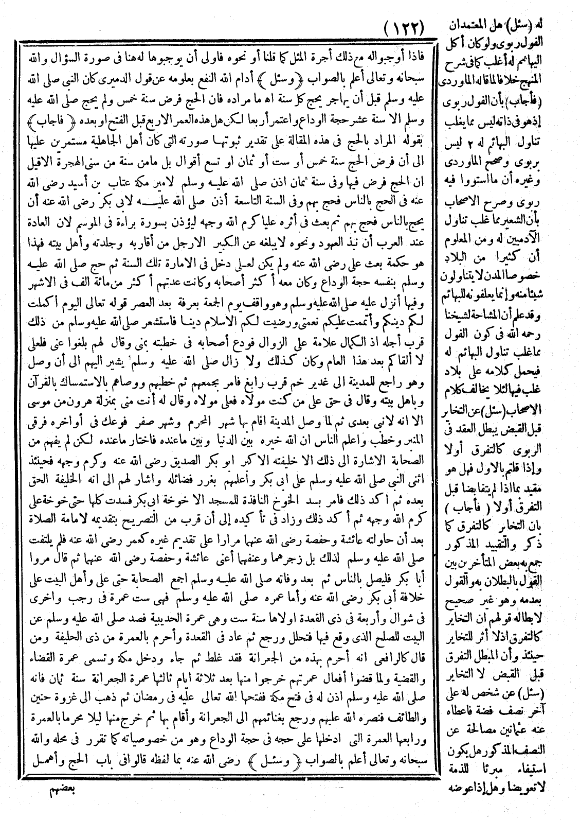 (وَسُئِلَ) - رَضِيَ اللَّهُ عَنْهُ - بِمَا لَفْظُهُ قَالُوا فِي بَابِ الْحَجِّ وَأَهْمَلَ