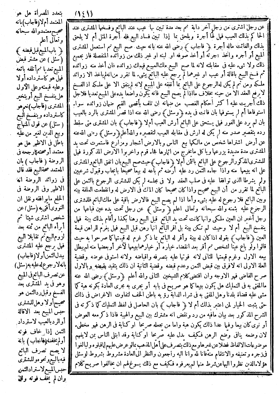 (فَأَجَابَ) - رَضِيَ اللَّهُ عَنْهُ - بِأَنَّهُ حَيْثُ صَحَّ الْبَيْعُ ثُمَّ اسْتَعْمَلَ الْمُشْتَرِي الْمَبِيعَ أَوْ أَجَرَهُ وَأَخَذَ أُجْرَتَهُ أَوْ أَخَذَ صُوفَهُ أَوْ لَبَنَهُ أَوْ غَيْرَ ذَلِكَ مِنْ زَوَائِدِهِ الْمُنْفَصِلَةِ فَازَ بِجَمِيعِ ذَلِكَ وَلَا شَيْءَ عَلَيْهِ فِي مُقَابَلَتِهِ لِأَنَّهُ لَمَّا صَحَّ الْبَيْعُ مَلَكَ الْمَبِيعَ فَيَمْلِكُ زَوَائِدَهُ فَإِنْ أَخَذَ مِنْهُ زَوَائِدَهُ ثُمَّ فَسَخَ الْبِيَعَ بِإِقَالَةٍ أَوْ عَيْبٍ أَوْ غَيْرِهِمَا لَمْ يَرْجِعْ عَلَيْهِ الْبَائِعُ بِشَيْءٍ لِمَا تَقَرَّرَ مِنْ أَنَّهُ لَمْ يَأْخُذْ إلَّا زَوَائِدَ مِلْكِهِ وَمِنْ ثَمَّ لَمْ يَكُنْ لَهُ الرُّجُوعُ عَلَى الْبَائِعِ بِمَا أَنْفَقَهُ عَلَى الْمَبِيعِ لِأَنَّهُ لَمْ يُنْفِقْ إلَّا عَلَى مِلْكِهِ إذْ الْفَسْخُ لَا يَرْفَعُ الْعَقْدَ إلَّا مِنْ حِينِهِ بِخِلَافِ مَا إذَا لَمْ يَصِحَّ الْبَيْعُ فَإِنَّهُ يَكُونُ وَاضِعًا يَدَهُ عَلَى الْمَبِيعِ تَعَدِّيًا فَلِأَجْلِ ذَلِكَ أُجْرِيَتْ عَلَيْهِ أَكْثَرُ أَحْكَامِ الْغَصْبِ مِنْ ضَمَانِهِ إنْ تَلِفَ بِأَقْصَى الْقِيَمِ وَضَمَانِ زَوَائِدِهِ سَوَاءٌ اسْتَوْفَاهَا أَمْ لَمْ يَسْتَوْفِهَا بِأَنْ فَاتَتْ فِي يَدِهِ.