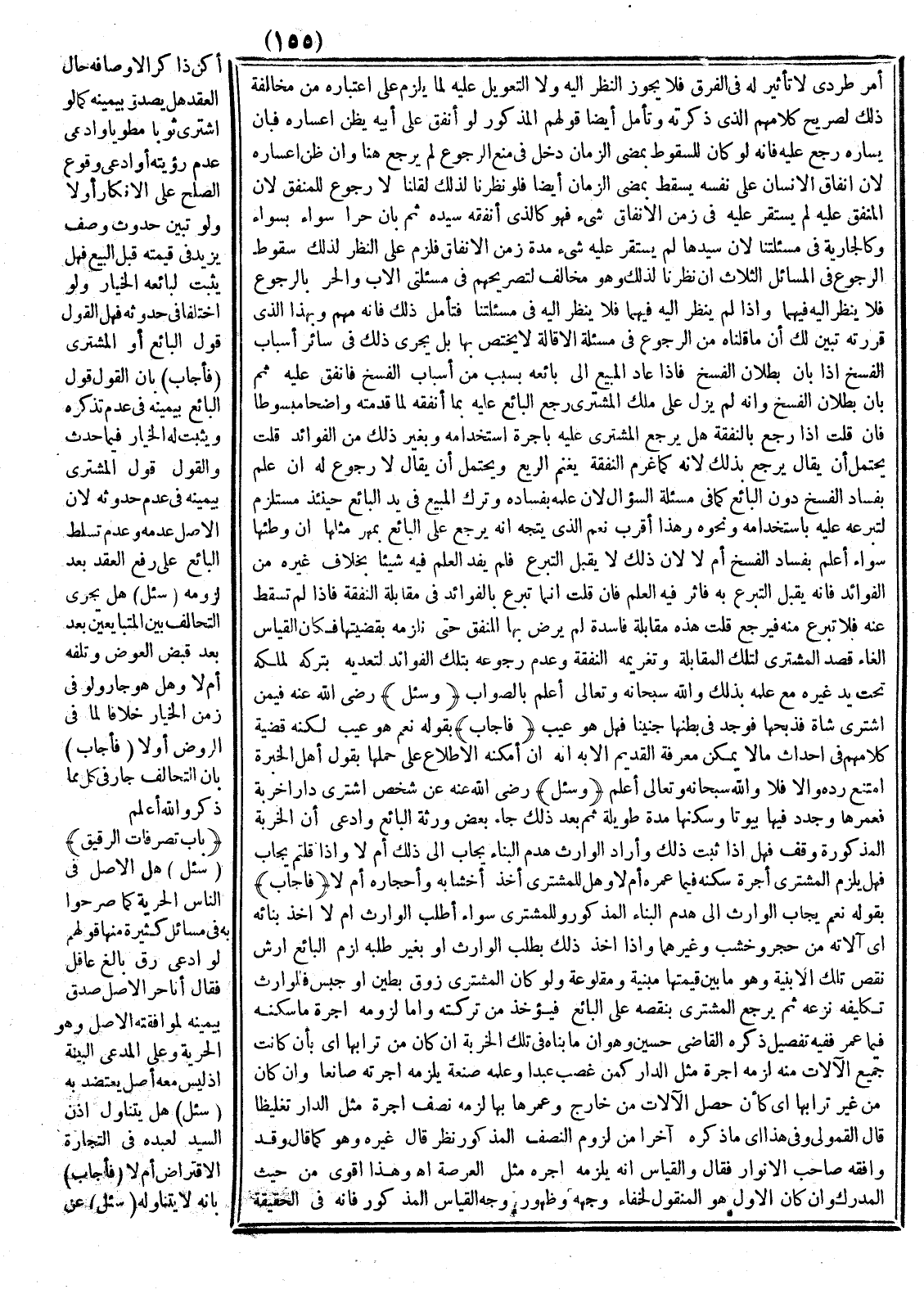 وَتَأَمَّلْ أَيْضًا قَوْلَهُمْ الْمَذْكُورَ لَوْ أَنْفَقَ عَلَى أَبِيهِ بِظَنِّ إعْسَارِهِ فَبَانَ يَسَارُهُ رَجَعَ عَلَيْهِ فَإِنَّهُ لَوْ كَانَ لِلسُّقُوطِ بِمُضِيِّ الزَّمَانِ دَخَلَ فِي مَنْعِ الرُّجُوعِ لَمْ يَرْجِعْ هُنَا وَإِنْ ظَنَّ إعْسَارَهُ لِأَنَّ إنْفَاقَ الْإِنْسَانِ عَلَى نَفْسِهِ يَسْقُطُ بِمُضِيِّ الزَّمَانِ أَيْضًا فَلَوْ نَظَرْنَا لِذَلِكَ لَقُلْنَا لَا رُجُوعَ لِلْمُنْفِقِ لِأَنَّ الْمُنْفَقَ عَلَيْهِ لَمْ يَسْتَقِرَّ عَلَيْهِ فِي زَمَنِ الْإِنْفَاقِ شَيْءٌ فَهُوَ كَاَلَّذِي أَنْفَقَهُ سَيِّدُهُ ثُمَّ بَانَ حُرًّا سَوَاءٌ بِسَوَاءٍ وَكَالْجَارِيَةِ فِي مَسْأَلَتِنَا لِأَنَّ سَيِّدَهَا لَمْ يَسْتَقِرَّ عَلَيْهِ شَيْءٌ مُدَّةَ زَمَنِ الْإِنْفَاقِ فَلَزِمَ عَلَى النَّظَرِ لِذَلِكَ سُقُوطُ الرُّجُوعِ فِي الْمَسَائِلِ الثَّلَاثِ إنْ نَظَرْنَا لِذَلِكَ وَهُوَ مُخَالِفٌ لِتَصْرِيحِهِمْ فِي مَسْأَلَتَيْ الْأَبِ وَالْحُرِّ بِالرُّجُوعِ فَلَا يُنْظَرُ إلَيْهِ فِيهِمَا وَإِذَا لَمْ يَنْظُرْ إلَيْهِ فِيهِمَا وَلَا يُنْظَرُ إلَيْهِ فِي مَسْأَلَتِنَا فَتَأَمَّلْ ذَلِكَ فَإِنَّهُ مُهِمٌّ وَبِهَذَا الَّذِي قَرَّرْته تَبَيَّنَ لَك أَنَّ مَا قُلْنَاهُ مِنْ الرُّجُوعِ فِي مَسْأَلَةِ الْإِقَالَةِ لَا يَخْتَصُّ بِهَا بَلْ يَجْرِي ذَلِكَ فِي سَائِرِ أَسْبَابِ الْفَسْخِ إذَا بَانَ بُطْلَانُ الْفَسْخِ