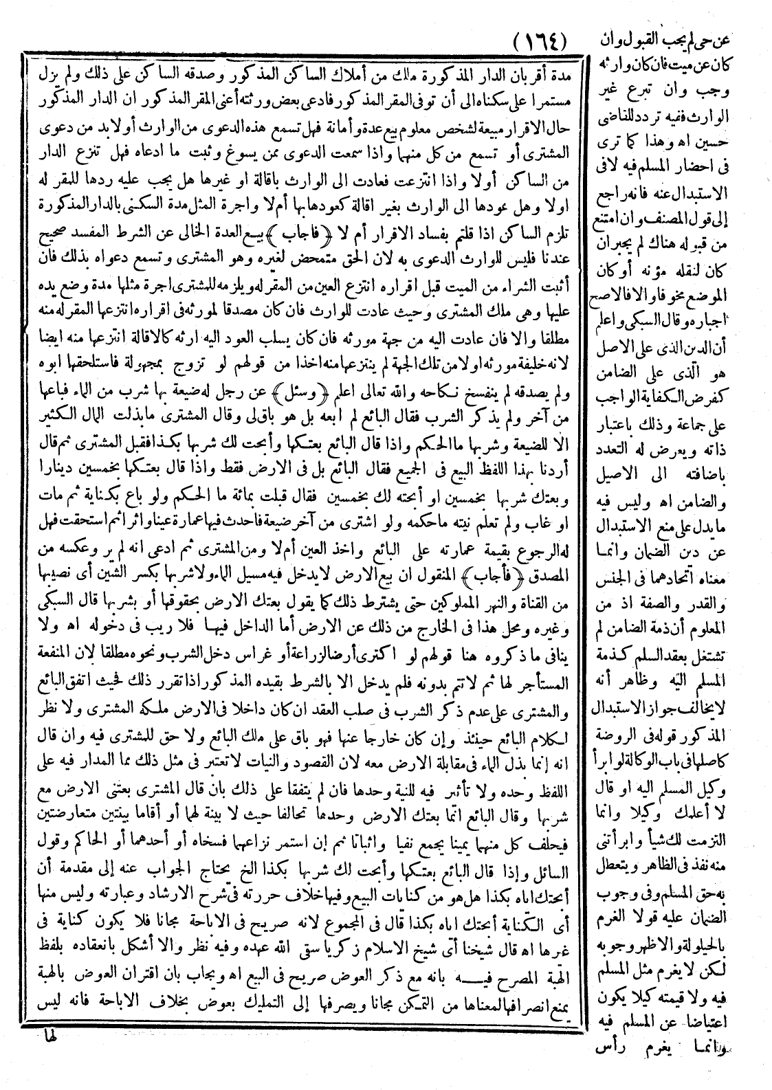 (فَأَجَابَ) بَيْعُ الْعِدَّةِ الْخَالِي عَنْ الشَّرْطِ الْمُفْسِدِ صَحِيحٌ عِنْدنَا فَلَيْسَ لِلْوَارِثِ الدَّعْوَى بِهِ لِأَنَّ الْحَقَّ مُتَمَحِّضٌ لِغَيْرِهِ وَهُوَ الْمُشْتَرِي وَتُسْمَعُ دَعْوَاهُ بِذَلِكَ.