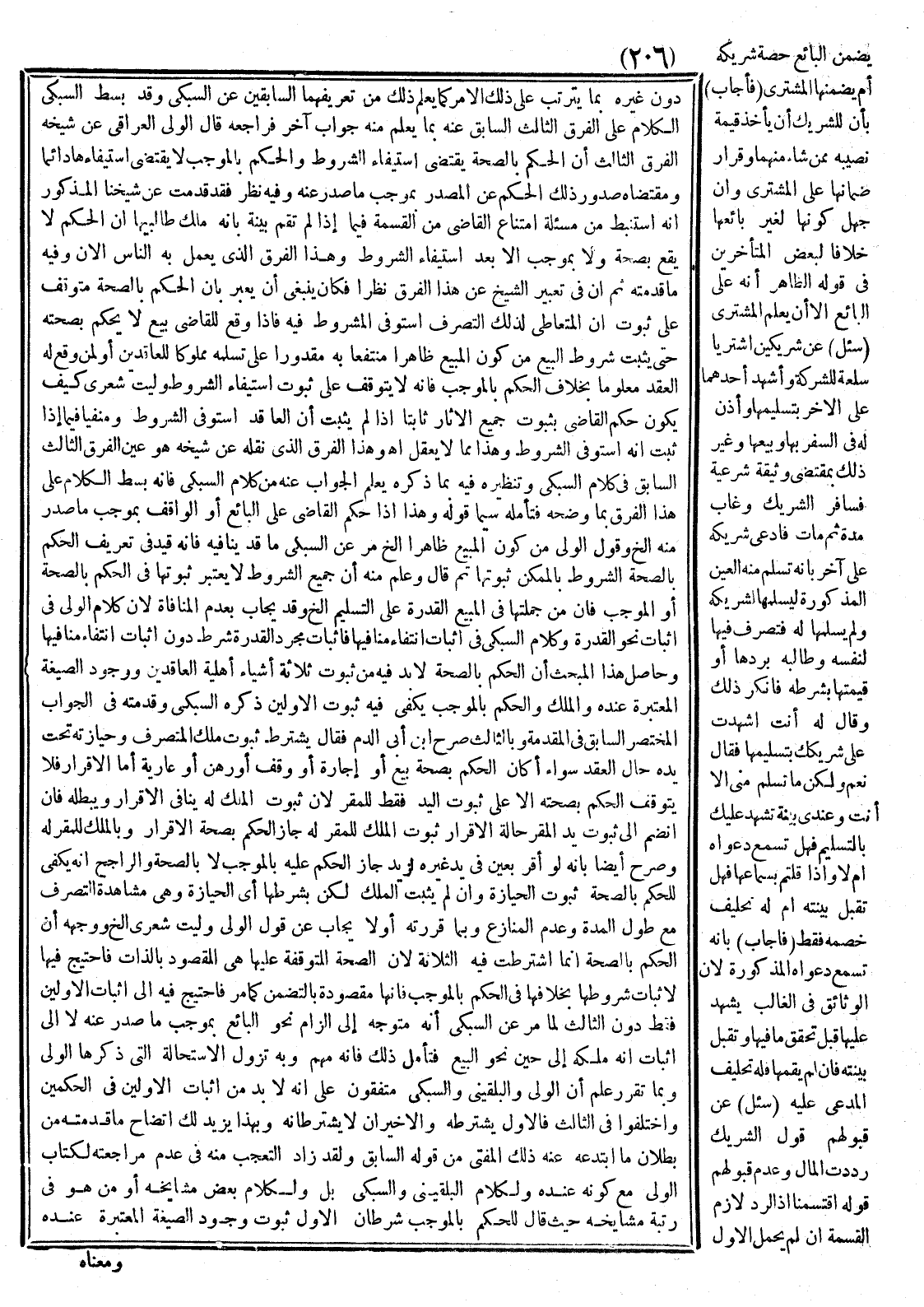 وَهَذَا الْفَرْقُ الَّذِي نَقَلَهُ عَنْ شَيْخِهِ هُوَ عَيْنُ الْفَرْقِ الثَّالِثِ السَّابِقِ فِي كَلَامِ السُّبْكِيّ وَتَنْظِيرُهُ فِيهِ بِمَا ذَكَرَهُ يُعْلَمُ الْجَوَابُ عَنْهُ مِنْ كَلَامِ السُّبْكِيّ فَإِنَّهُ بَسَطَ الْكَلَامَ عَلَى هَذَا الْفَرْقِ بِمَا وَضَّحَهُ فَتَأَمَّلْهُ سِيَّمَا قَوْلُهُ وَهَذَا إذَا حَكَمَ الْقَاضِي عَلَى الْبَائِعِ أَوْ الْوَاقِفِ بِمُوجَبِ مَا صَدَرَ مِنْهُ إلَخْ وَقَوْلُ الْوَلِيِّ مِنْ كَوْنِ الْمَبِيعِ ظَاهِرًا إلَخْ مَرَّ عَنْ السُّبْكِيّ مَا قَدْ يُنَافِيهِ فَإِنَّهُ قَيَّدَ فِي تَعْرِيفِ الْحُكْمِ بِالصِّحَّةِ الشُّرُوطَ بِالْمُمْكِنِ ثُبُوتُهَا ثُمَّ قَالَ وَعُلِمَ مِنْهُ أَنَّ جَمِيعَ الشُّرُوطِ لَا يُعْتَبَرُ ثُبُوتُهَا فِي الْحُكْمِ بِالصِّحَّةِ أَوْ الْمُوجَبِ فَإِنَّ مِنْ جُمْلَتِهَا فِي الْمَبِيعِ الْقُدْرَةَ عَلَى التَّسْلِيمِ إلَخْ وَقَدْ يُجَابُ بِعَدَمِ الْمُنَافَاةِ لِأَنَّ كَلَامَ الْوَلِيِّ فِي إثْبَاتِ نَحْوِ الْقُدْرَةِ وَكَلَامَ السُّبْكِيّ فِي إثْبَاتِ انْتِفَاءِ مُنَافِيهَا فَإِثْبَاتُ مُجَرَّدِ الْقُدْرَةِ شَرْطٌ دُون إثْبَاتِ انْتِفَاءِ مُنَافِيهَا وَحَاصِلُ هَذَا الْمَبْحَثِ أَنَّ الْحُكْمَ بِالصِّحَّةِ لَا بُدَّ فِيهِ مِنْ ثُبُوتِ ثَلَاثَةِ أَشْيَاءَ أَهْلِيَّةِ الْعَاقِدَيْنِ وَوُجُودِ الصِّيغَةِ الْمُعْتَبَرَةِ عِنْدَهُ وَالْمِلْكِ وَالْحُكْمِ بِالْمُوجَبِ يَكْفِي فِيهِ ثُبُوتُ الْأَوَّلَيْنِ ذَكَرَهُ السُّبْكِيّ وَقَدَّمْتُهُ فِي الْجَوَابِ الْمُخْتَصَرِ السَّابِقِ فِي الْمُقَدِّمَةِ.