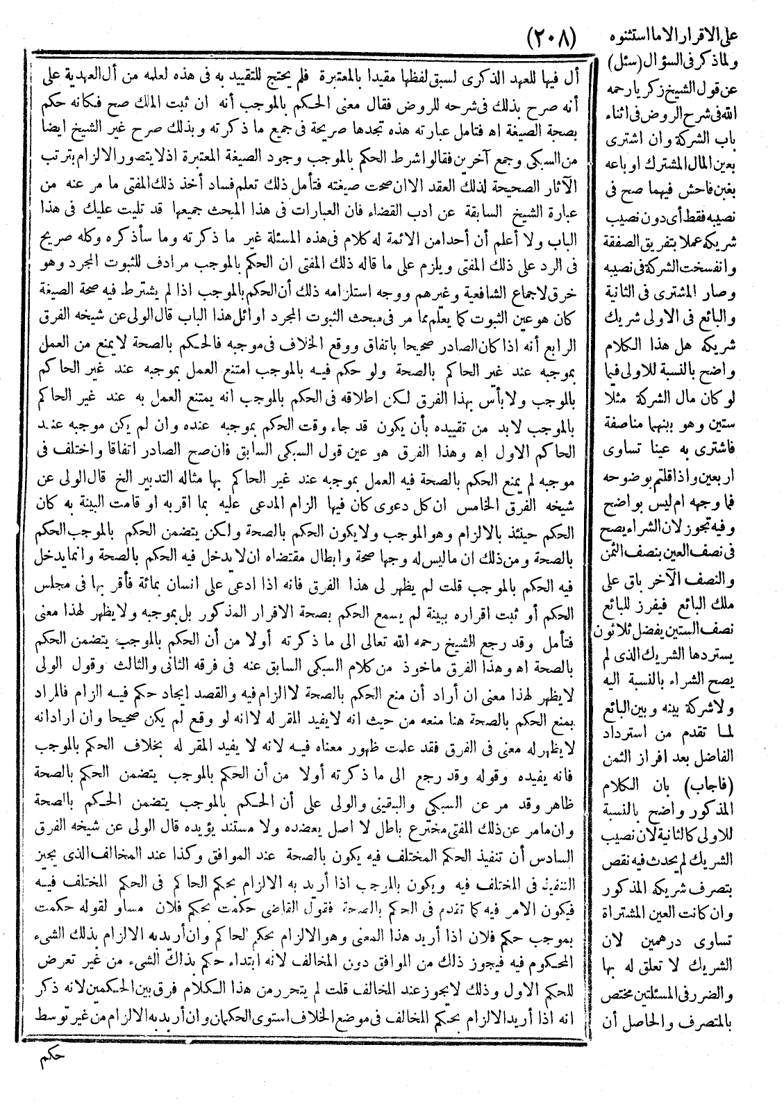 فَإِنَّ الْعِبَارَاتِ فِي هَذَا الْمَبْحَثِ جَمِيعَهَا قَدْ تُلِيَتْ عَلَيْكَ فِي هَذَا الْبَابِ وَلَا أَعْلَمُ أَنَّ أَحَدًا مِنْ الْأَئِمَّةِ لَهُ كَلَامٌ فِي هَذِهِ الْمَسْأَلَةِ غَيْرُ مَا ذَكَرْتُهُ وَمَا سَأَذْكُرُهُ وَكُلُّهُ صَرِيحٌ فِي الرَّدِّ عَلَى ذَلِكَ الْمُفْتِي وَيَلْزَمُ عَلَى مَا قَالَهُ ذَلِكَ الْمُفْتِي أَنَّ الْحُكْمَ بِالْمُوجَبِ مُرَادِفٌ لِلثُّبُوتِ الْمُجَرَّدِ وَهُوَ خَرْقٌ لِإِجْمَاعِ الشَّافِعِيَّةِ وَغَيْرِهِمْ وَوَجْهُ اسْتِلْزَامِهِ ذَلِكَ أَنَّ الْحُكْمَ بِالْمُوجَبِ إذَا لَمْ يُشْتَرَطْ فِيهِ صِحَّةُ الصِّيغَةِ كَانَ هُوَ عَيْنَ الثُّبُوتِ كَمَا يُعْلَمُ مِمَّا مَرَّ فِي مَبْحَثِ الثُّبُوتِ الْمُجَرَّدِ أَوَائِلَ هَذَا الْبَابِ.