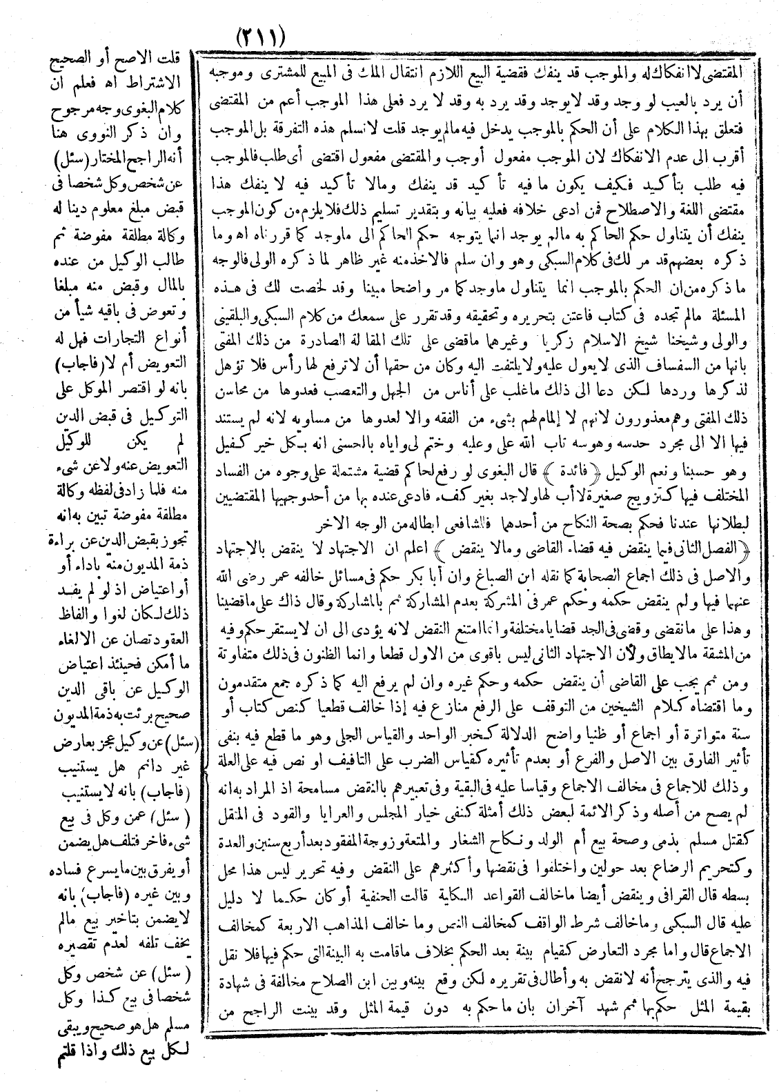وَقَدْ تَقَرَّرَ عَنْ سَمْعِكَ مِنْ كَلَامِ السُّبْكِيّ وَالْبُلْقِينِيِّ وَالْوَلِيِّ وَشَيْخِنَا شَيْخِ الْإِسْلَامِ زَكَرِيَّا وَغَيْرِهِمَا مَا قَضَى عَلَى تِلْكَ الْمَقَالَةِ الصَّادِرَةِ مِنْ ذَلِكَ الْمُفْتِي بِأَنَّهَا مِنْ السَّفْسَافِ الَّذِي لَا يُعَوَّلُ عَلَيْهِ وَلَا يُلْتَفَتُ إلَيْهِ وَكَانَ مِنْ حَقِّهَا أَنْ لَا تُرْفَعَ لَهَا رَأْسٌ فَلَا تُؤَهَّلُ لِذَكَرِهَا وَرَدِّهَا لَكِنْ دَعَا إلَى ذَلِكَ مَا غَلَبَ عَلَى أُنَاسٍ مِنْ الْجَهْلِ وَالتَّعَصُّبِ فَعَدُوّهَا مِنْ مَحَاسِنِ ذَلِكَ الْمُفْتِي وَهُمْ مَعْذُورُونَ لِأَنَّهُمْ لَا إلْمَامَ لَهُمْ بِشَيْءٍ مِنْ الْفِقْهِ وَإِلَّا لَعَدُّوهَا مِنْ مَسَاوِئِهِ لِأَنَّهُ لَمْ يَسْتَنِدْ فِيهَا إلَى مُجَرَّدِ حَدْسِهِ وَهَوَسِهِ تَابَ اللَّهُ عَلَيَّ وَعَلَيْهِ وَخَتَمَ لِي وَإِيَّاهُ بِالْحُسْنَى إنَّهُ بِكُلِّ خَيْرٍ كَفِيلٌ وَهُوَ حَسْبُنَا وَنِعْمَ الْوَكِيلُ.