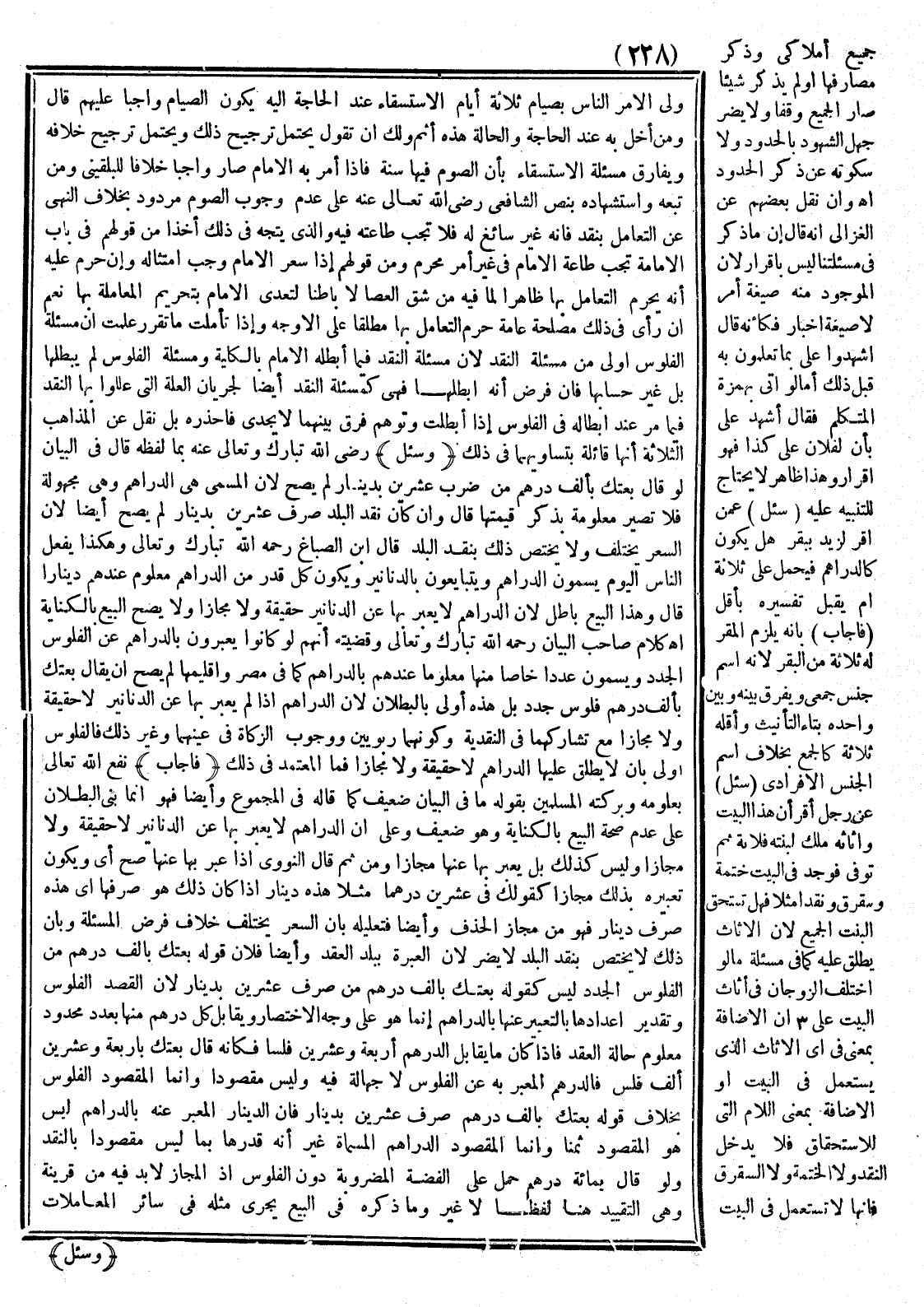 (وَسُئِلَ) - رَضِيَ اللَّهُ تَبَارَكَ وَتَعَالَى عَنْهُ - بِمَا لَفْظُهُ قَالَ فِي الْبَيَانِ لَوْ قَالَ بِعْتُك بِأَلْفِ دِرْهَمٍ مِنْ ضَرْبِ عِشْرِينَ بِدِينَارٍ لَمْ يَصِحَّ لِأَنَّ الْمُسَمَّى هِيَ الدَّرَاهِمُ وَهِيَ مَجْهُولَةٌ فَلَا تَصِيرُ مَعْلُومَةً بِذِكْرِ قِيمَتِهَا قَالَ وَإِنْ كَانَ نَقْدُ الْبَلَدِ صَرْفُ عِشْرِينَ بِدِينَارٍ لَمْ يَصِحَّ أَيْضًا لِأَنَّ السِّعْرَ يَخْتَلِفُ وَلَا يَخْتَصُّ ذَلِكَ بِنَقْدِ الْبَلَدِ قَالَ ابْنُ الصَّبَّاغِ رَحِمَهُ اللَّهُ تَبَارَكَ وَتَعَالَى وَهَكَذَا يَفْعَلُ النَّاسُ الْيَوْمَ يُسَمُّونَ الدَّرَاهِمَ وَيَتَبَايَعُونَ بِالدَّنَانِيرِ وَيَكُونُ كُلُّ قَدْرٍ مِنْ الدَّرَاهِمِ مَعْلُومًا عِنْدَهُمْ دِينَارًا قَالَ وَهَذَا الْبَيْعُ بَاطِلٌ لِأَنَّ الدَّرَاهِمَ لَا يُعَبَّرُ بِهَا عَنْ الدَّنَانِيرِ حَقِيقَةً وَلَا مَجَازًا وَلَا يَصِحُّ الْبَيْعُ بِالْكِنَايَةِ اهـ كَلَامُ صَاحِبِ الْبَيَانِ رَحِمَهُ اللَّهُ تَبَارَكَ وَتَعَالَى وَقَضِيَّتُهُ أَنَّهُمْ لَوْ كَانُوا يُعَبِّرُونَ بِالدَّرَاهِمِ عَنْ الْفُلُوسِ الْجُدُدِ وَيُسَمُّونَ عَدَدًا خَاصًّا مِنْهَا مَعْلُومًا عِنْدَهُمْ بِالدَّرَاهِمِ كَمَا فِي مِصْرَ وَإِقْلِيمِهَا لَمْ يَصِحَّ أَنْ يُقَالَ بِعْتُكَ بِأَلْفِ دِرْهَمٍ فُلُوسٍ جُدُدٍ بَلْ هَذِهِ أَوْلَى بِالْبُطْلَانِ لِأَنَّ الدَّرَاهِمَ إذًا لَمْ يُعَبَّرْ بِهَا عَنْ الدَّنَانِيرِ لَا حَقِيقَةً وَلَا مَجَازًا مَعَ تَشَارُكِهِمَا فِي النَّقْدِيَّةِ وَكَوْنِهِمَا رِبَوِيَّيْنِ وَوُجُوبِ الزَّكَاةِ فِي عَيْنِهِمَا وَغَيْرِ ذَلِكَ.