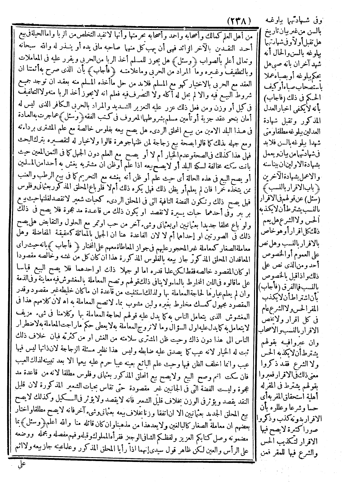(فَأَجَابَ) بِأَنَّهُ حَيْثُ رَأَى الْمُعَاقِدَانِ الْمِحْلَقَ الْمَذْكُورَ جَازَ بَيْعُهُ. بِالْفُلُوسِ الْمَذْكُورَةِ هَذَا إنْ كَانَ كُلُّ مَنْ غَشَّهُ وَخَالَصَهُ مَقْصُودًا أَوْ كَانَ الْمَقْصُودُ خَالَصَهُ فَقَطْ لَكِنْ عَلِمَا قَدْرَهُ أَمَّا لَوْ جَهِلَا ذَلِكَ أَوْ أَحَدَهُمَا فَلَا يَصِحُّ الْبَيْعُ قِيَاسًا عَلَى مَا قَالُوهُ فِي اللَّبَنِ الْمَخْلُوطِ بِالْمَاءِ وَلَا يُنَافِي ذَلِكَ قَوْلَهُمْ وَتَصِحُّ الْمُعَامَلَةُ بِالْمَغْشُوشِ فِيهِ مُعَايَنَةً وَفِي الذِّمَّةِ وَإِنْ لَمْ يَعْلَمْ عِيَارَهَا لِحَاجَةِ الْمُعَامَلَةِ بِهَا.
