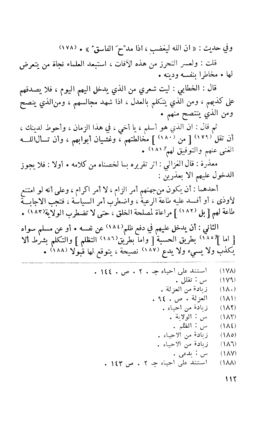 ثمَّ قَالَ إِن الَّذِي هُوَ أسلم يَا أخي فِي هَذَا الزَّمَان وأحوط لدينك أَن نقل من مخالطتهم وغشيان أَبْوَابهم وان تسْأَل الله الْغنى والتوفيق لَهُم 3 معذرة قَالَ الْغَزالِيّ اثر تَقْرِيره بِمَا لخصناه من كَلَامه أَولا فَلَا يجوز الدُّخُول عَلَيْهِم إِلَّا بعذرين