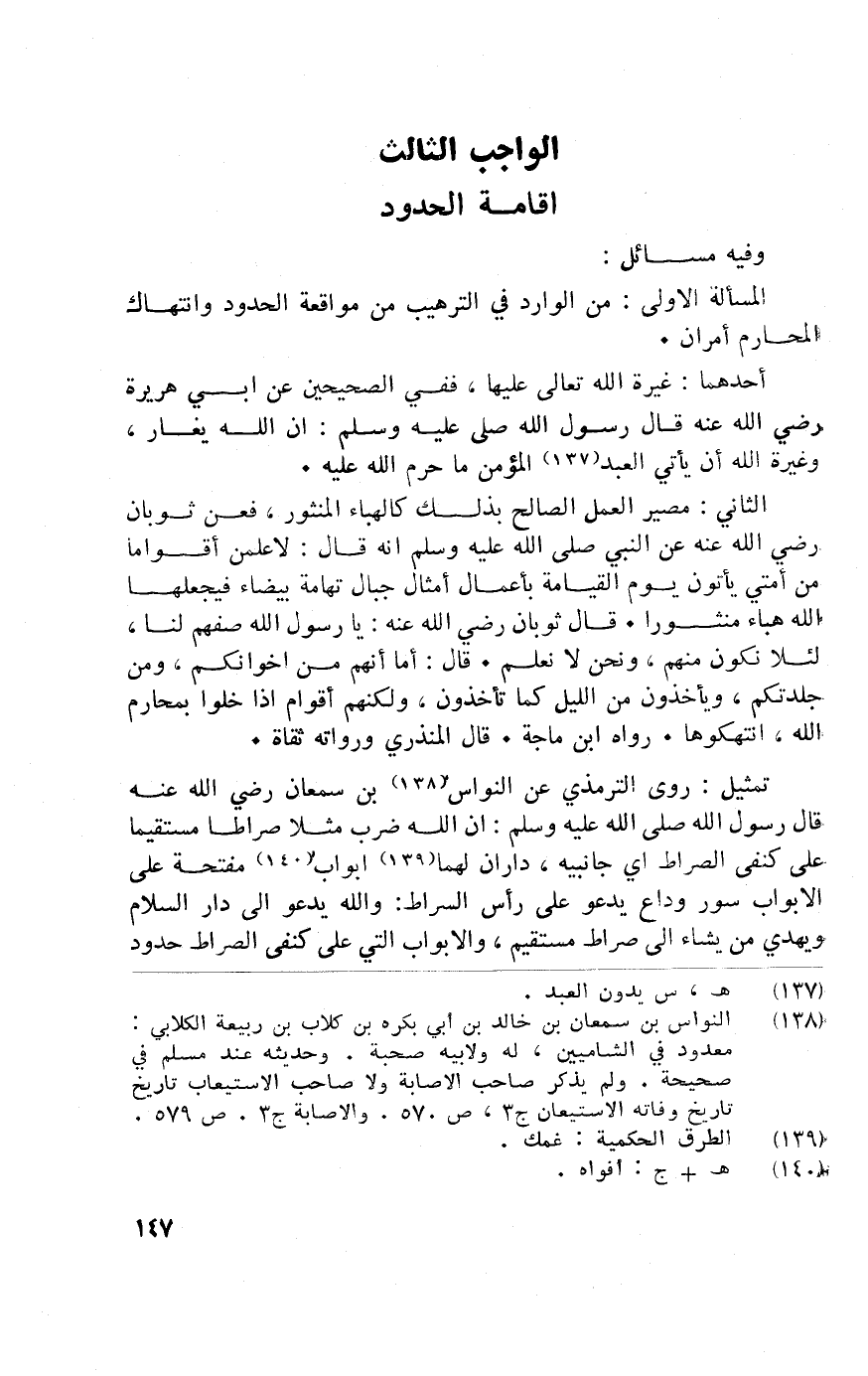 الْمَسْأَلَة الأولى من الْوَارِد فِي التَّرْهِيب من مواقعة الْحُدُود وانتهاك الْمَحَارِم أَمْرَانِ