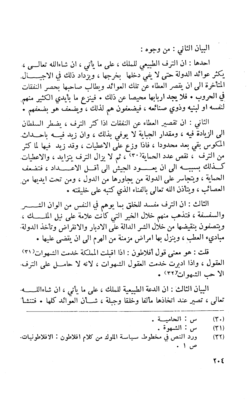 قلت هُوَ معنى قَول أفلاطون إِذا اقبلت المملكة خدمت الشَّهَوَات الْعُقُول وَإِذا ادبرت خدمت الْعُقُول الشَّهَوَات لانه لَا حَامِل على الترف إِلَّا حب الشَّهَوَات