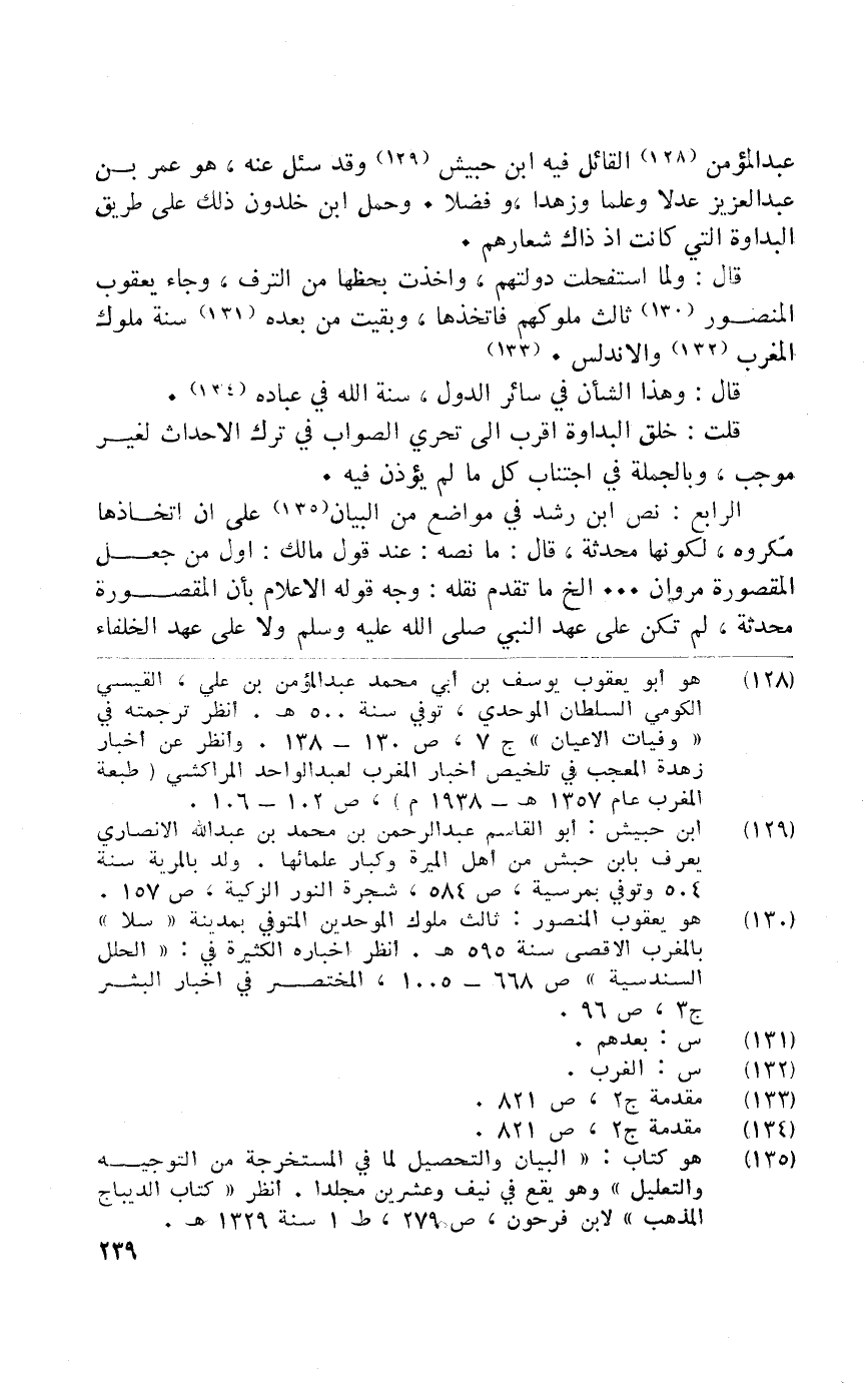 عبد الْمُؤمن الْقَائِل فِيهِ ابْن جبيش وَقد سُئِلَ عَنهُ وَهُوَ عمر بن عبد الْعَزِيز عدلا علما وزهدا وفضلا وَحمل ابْن خلدون ذَلِك على طَرِيق البداوة الَّتِي كَانَت إِذْ ذَاك شعارهم