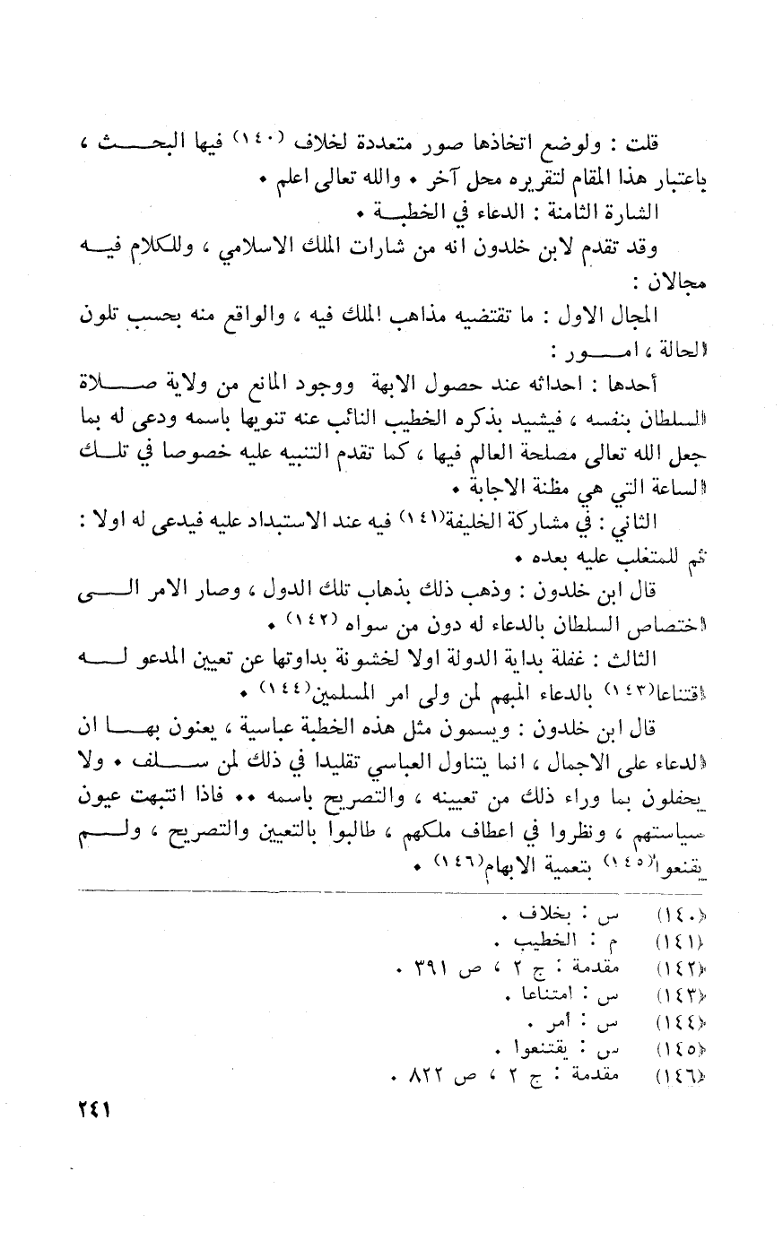 وَقد تقدم لِابْنِ خلدون انه من شارات الْملك الإسلامي وللكلام فِيهِ مجالان