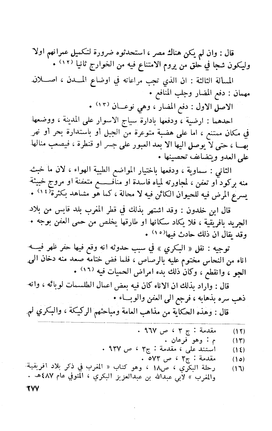 الْمَسْأَلَة الثَّالِثَة أَن الَّذِي تجب مراعاته فِي اوضاع المدن اصلان مهمان دفع المضار وجلب الْمَنَافِع