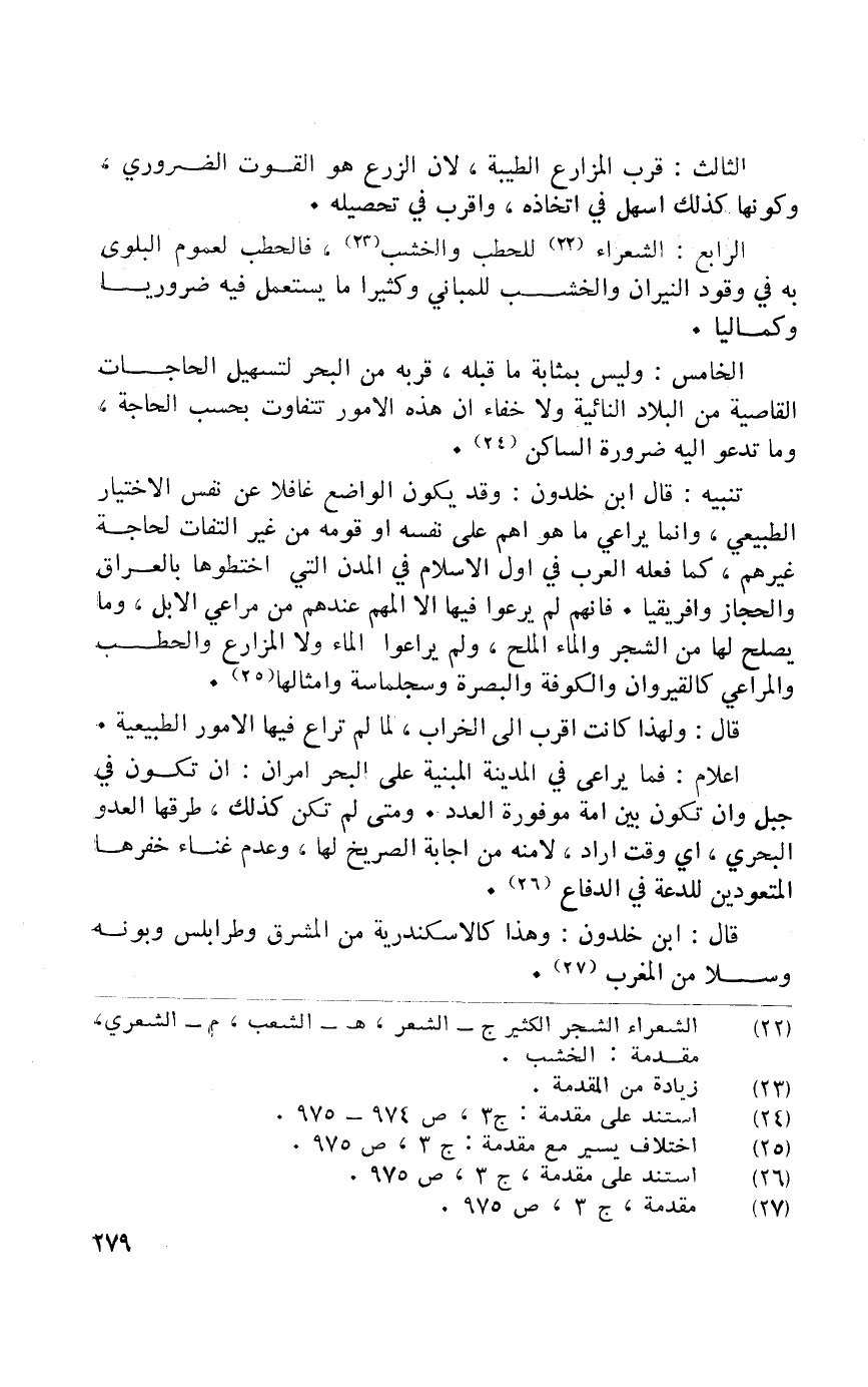 تَنْبِيه قَالَ ابْن خلدون وَقد يكون الْوَاضِع غافلا عَن نفس الِاخْتِيَار الطبيعي وانما يُرَاعِي مَا هُوَ اهم على نَفسه أَو قومه من غير الْتِفَات لحَاجَة غَيرهم كَمَا فعله الْعَرَب فِي أول الْإِسْلَام فِي المدن الَّتِي اختطوها بالعراق والحجاز وإفريقيا فانهم لم يرعوا فِيهَا إِلَّا المهم عِنْدهم من مرَاعِي الْإِبِل وَمَا يصلح لَهَا من الشّجر وَالْمَاء الْملح وَلم يراعوا المَاء وَلَا الْمزَارِع والحطب والمراعي كالقيروان والكوفة وَالْبَصْرَة وسجلسماسة وامثالها