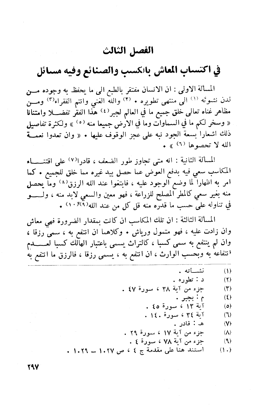 فِي اكْتِسَاب المعاش بِالْكَسْبِ والصنائع وَفِيه مسَائِل