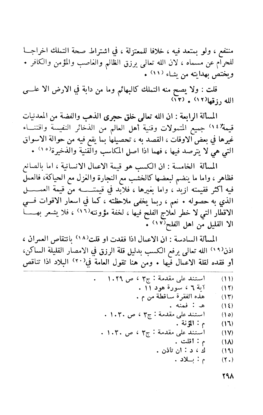 الْمَسْأَلَة الْخَامِسَة أَن الْكسْب هُوَ قيمَة الاعمال الانسانية إِمَّا بالصانع فَظَاهر واما مَا يَنْضَم لبعضها كالخشب مَعَ النجارة والغزل مَعَ الحياكة فَالْعَمَل فِيهِ اكثر فَقيمته ازيد واما بغَيْرهَا فَلَا بُد فِي قِيمَته من قيمَة الْعَمَل الَّذِي بِهِ حُصُوله نعم رُبمَا يخفي ملاحظته كَمَا فِي اسعار الأقوات فِي الاقطار الَّتِي لَا خطر لعلاج الفلح فِيهَا لخفة مؤونته فَلَا يشْعر بهَا إِلَّا الْقَلِيل من أهل الفلح