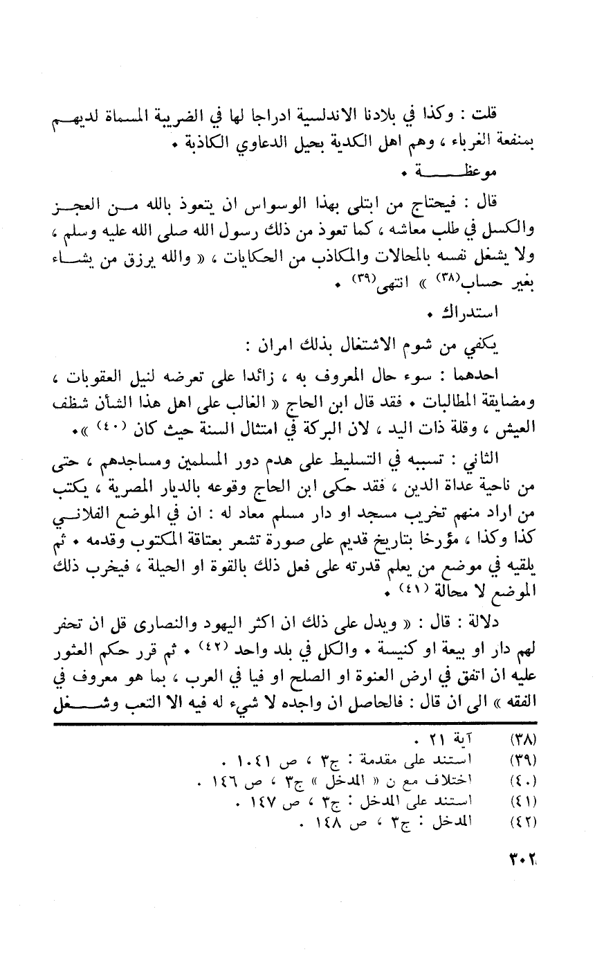 قلت وَكَذَا فِي بِلَادنَا الأندلسية ادراجا لَهَا فِي الضريبة الْمُسَمَّاة لديهم بِمَنْفَعَة الغرباء وهم أهل الكدية بجيل الدعاوي الكاذبة