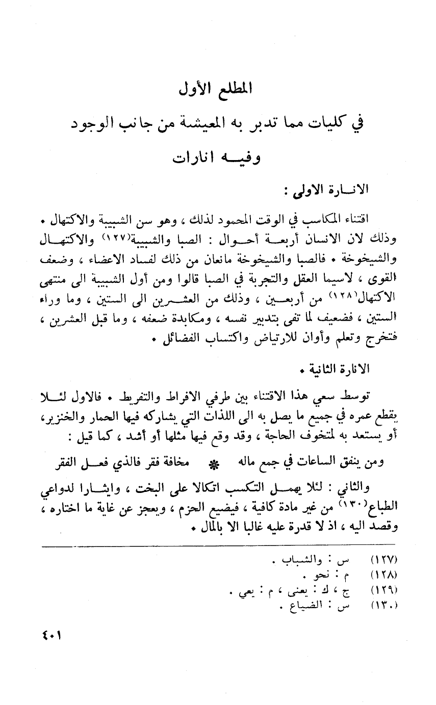 فِي كليات مِمَّا تدبر بِهِ الْمَعيشَة من جَانب الْوُجُود وَفِيه انارات