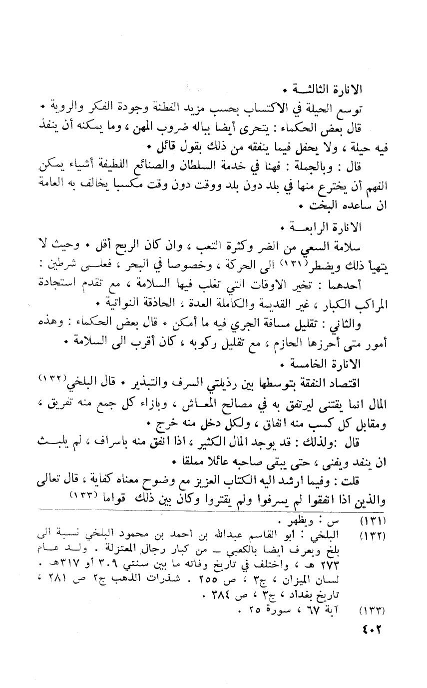 قلت وَفِيمَا ارشد اليه الْكتاب الْعَزِيز مَعَ وضوح مَعْنَاهُ كِفَايَة قَالَ تَعَالَى وَالَّذين إِذا انفقوما لم يُسْرِفُوا وَلم يقترُوا وَكَانَ بَين ذَلِك قواما
