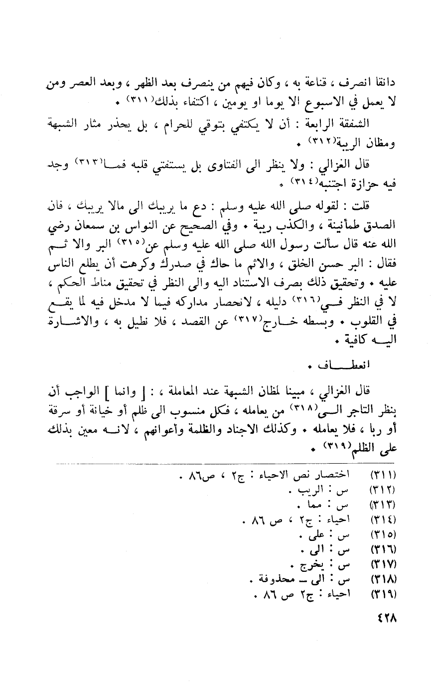 الشَّفَقَة الرَّابِعَة أَن لَا يَكْتَفِي بتوقي لِلْحَرَامِ بل يحذر مثار الشُّبْهَة ومظان الرِّيبَة