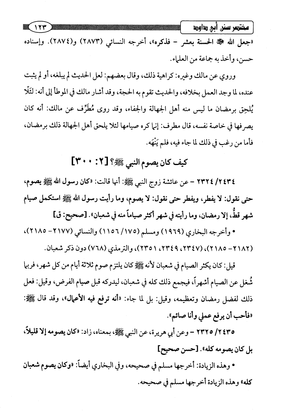 2435/ 2325 - وعن أبي هريرة، عن النبي -صلى اللَّه عليه وسلم-، بمعناه، زاد: "كان يصومه إلا قليلًا، بل كان يصومه كله".hحسن صحيح]