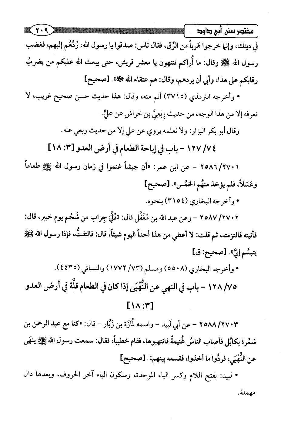 75/ 128 - باب في النهي عن النُّهْبَى إذا كان في الطعام قلَّة في أرض العدو [3: 18]