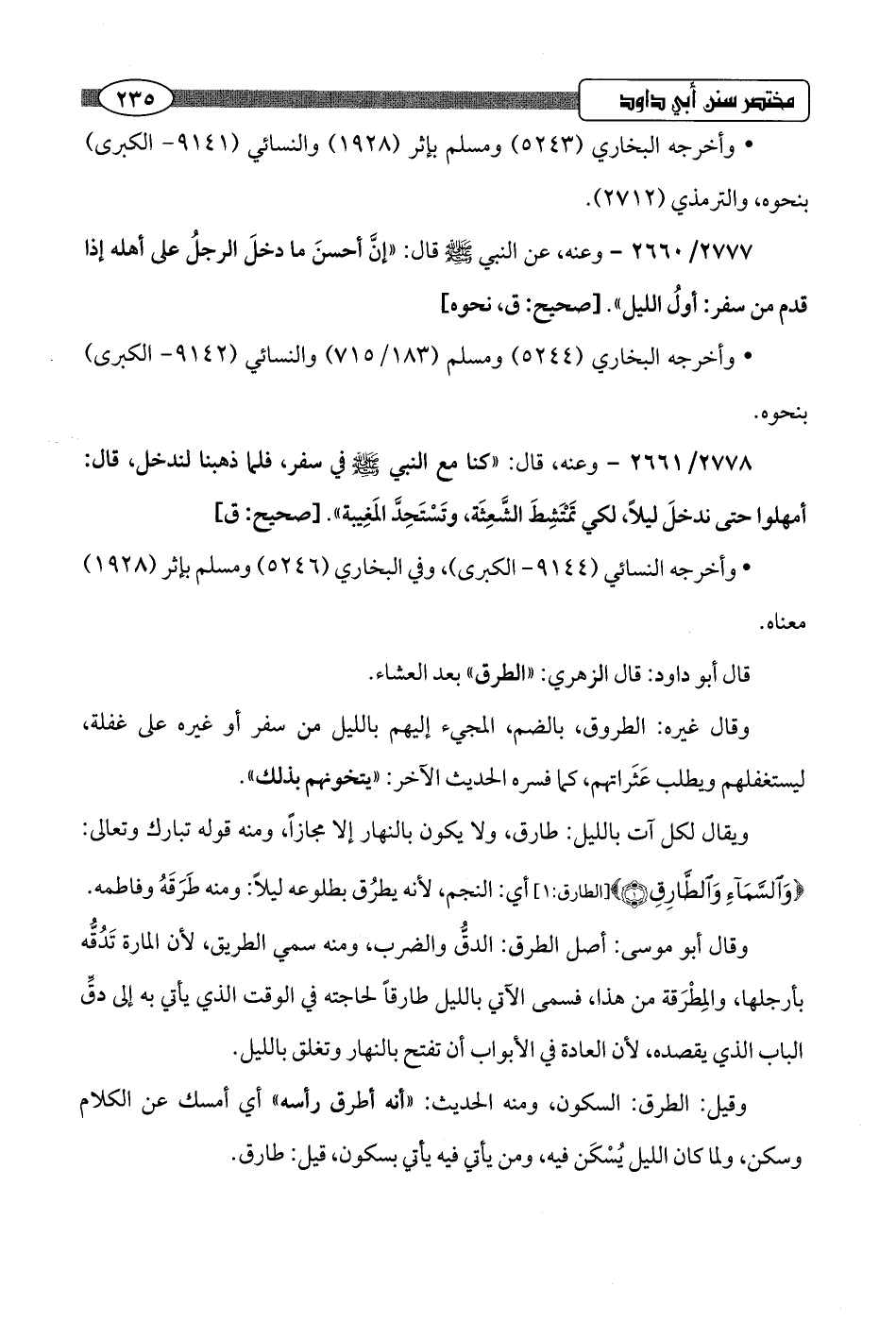 قال أبو داود: قال الزهري: "الطرق" بعد العشاء.