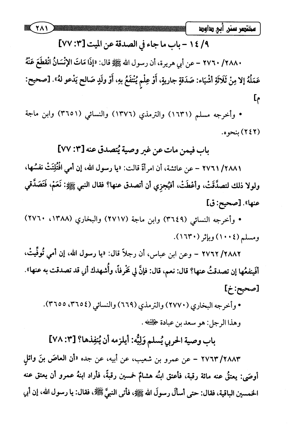 9/ 14 - باب ما جاء في الصدقة عن الميت [3: 77]