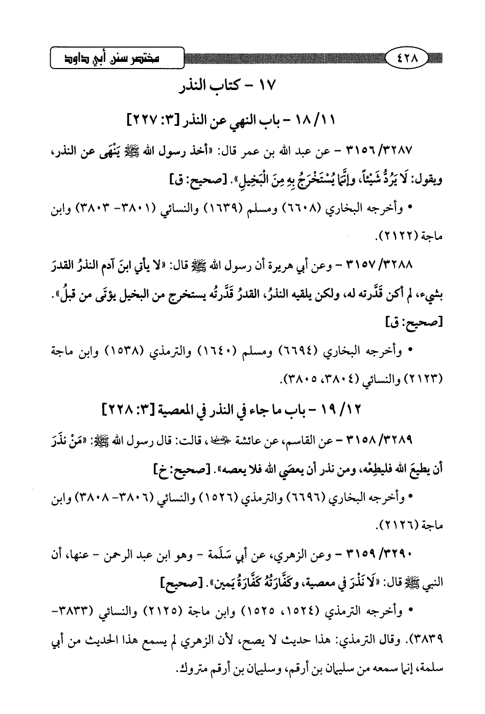 12/ 19 - باب ما جاء في النذر في المعصية [3: 228]